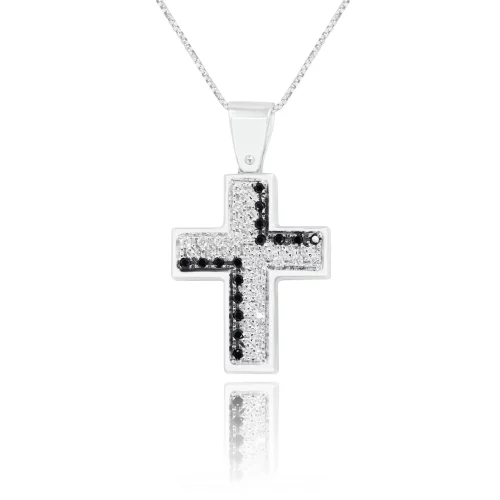 Ciondolo Croce con Diamanti in oro brunito e oro bianco 18kt, disponibile in diverse Carature (non è inclusa la catenina).