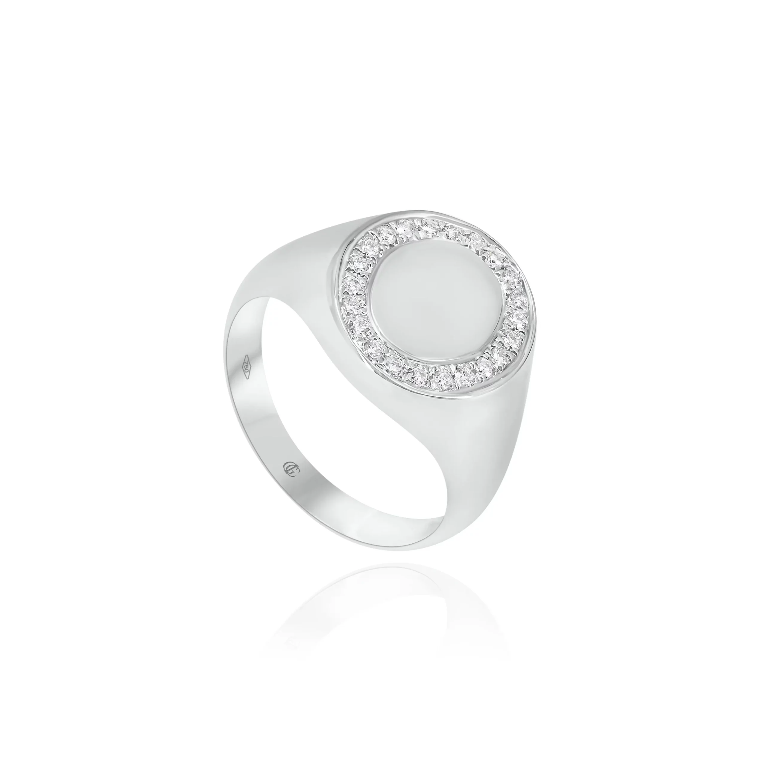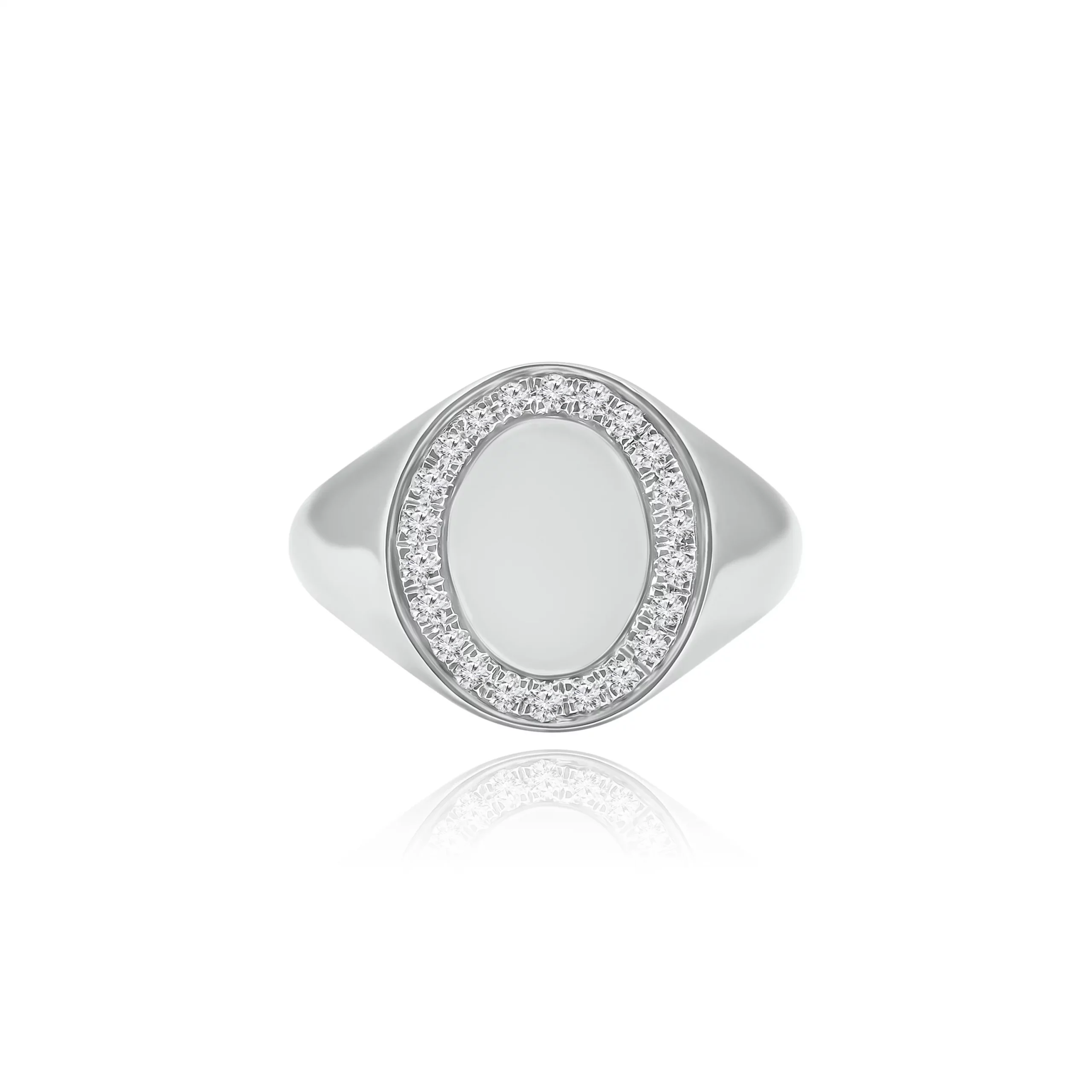 Anello Chevalier Ovale con Diamanti in oro bianco 18 kt, disponibile in diverse carature.