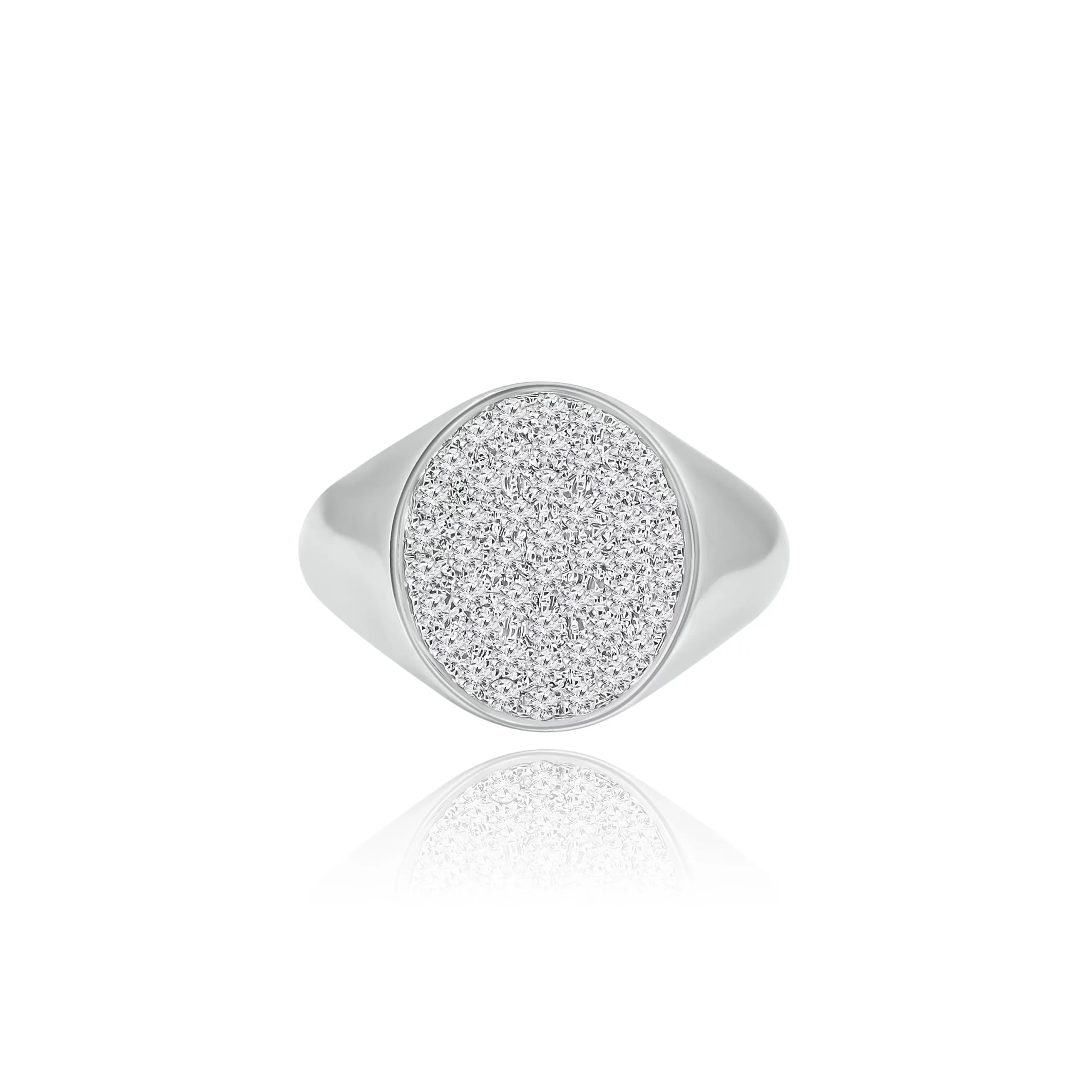 Anello Chevalier Ovale con Diamanti in oro bianco 18 kt.