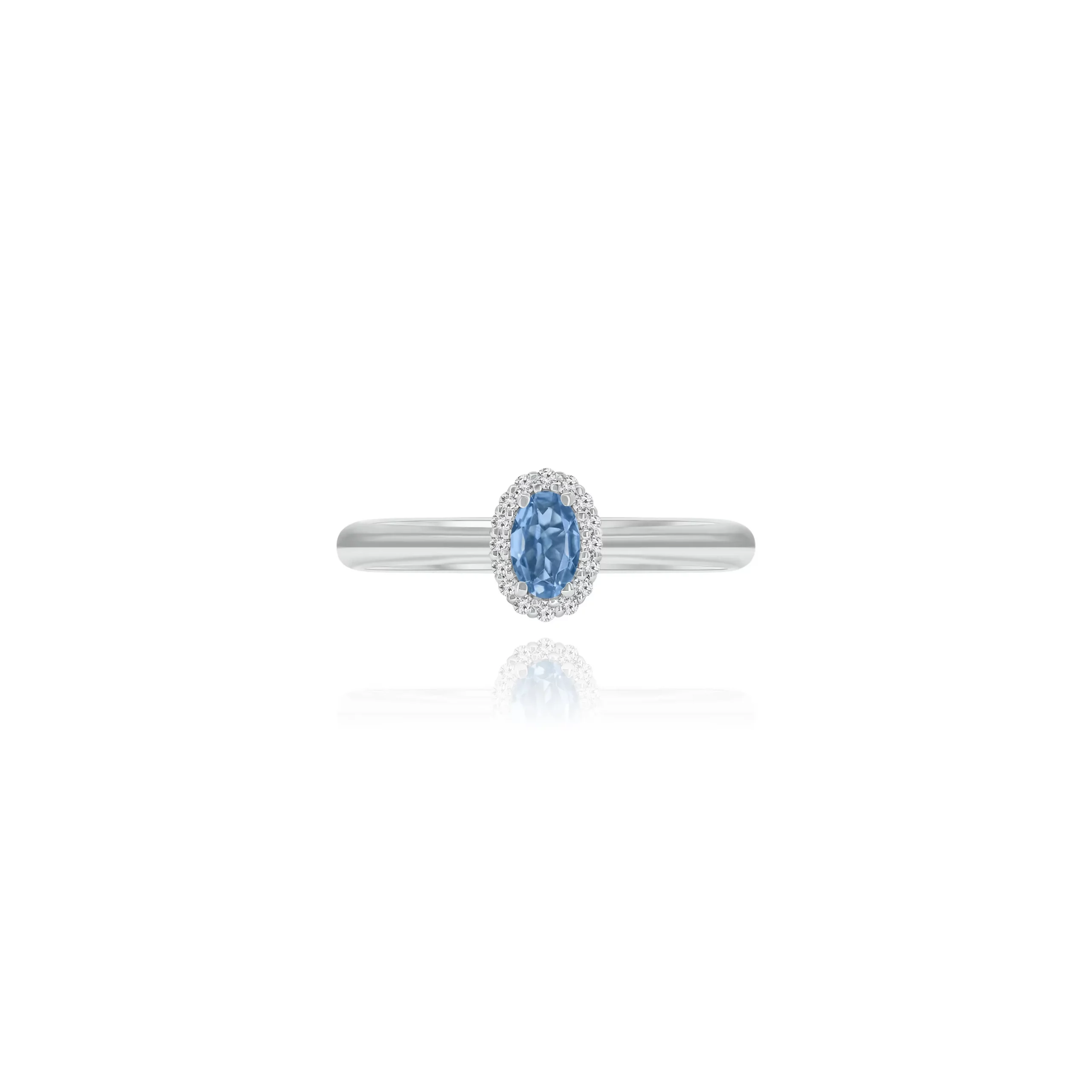 Anello con Acquamarina e Diamanti in oro bianco 18 kt: