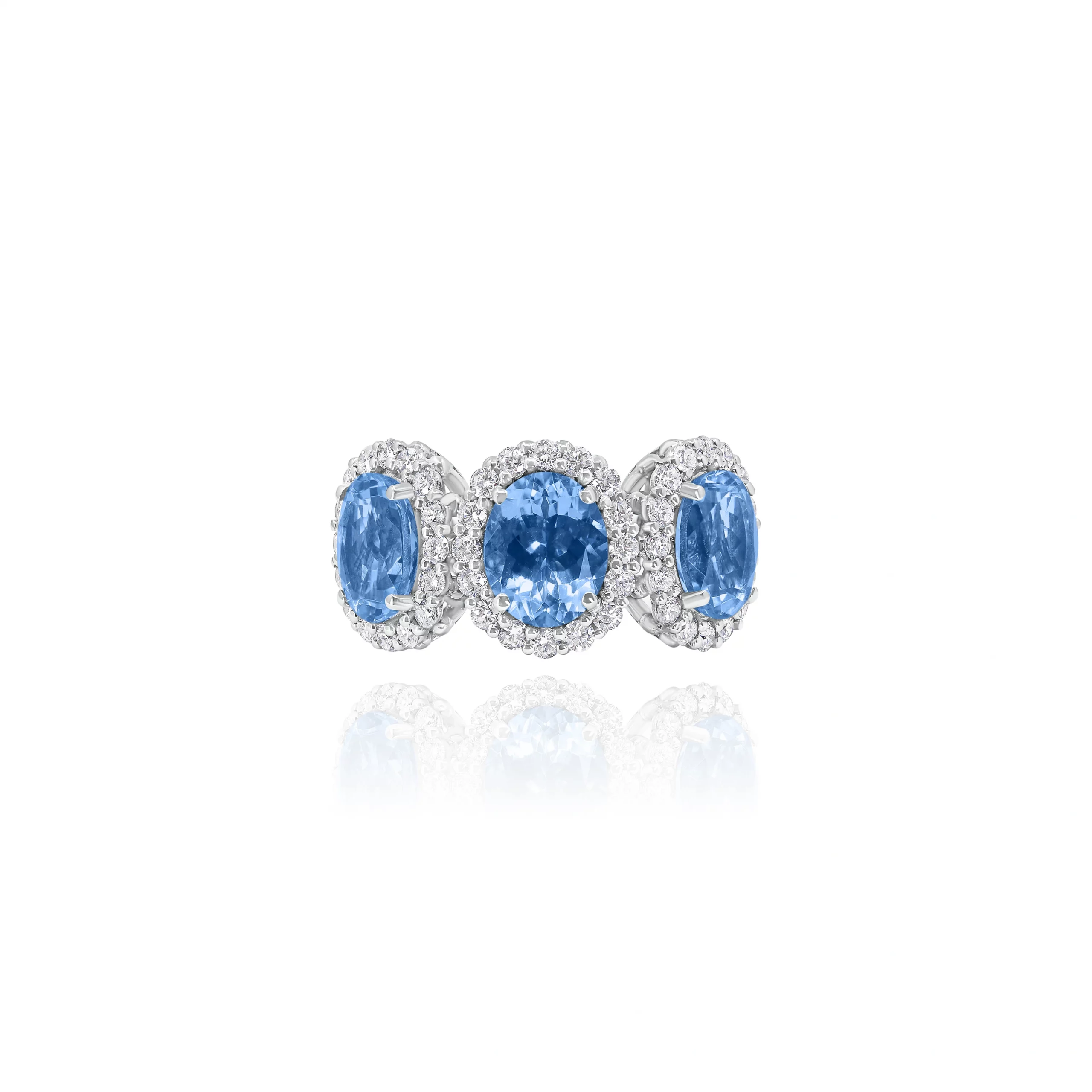 Anello con Acquamarina e Diamanti in oro bianco 18 kt: