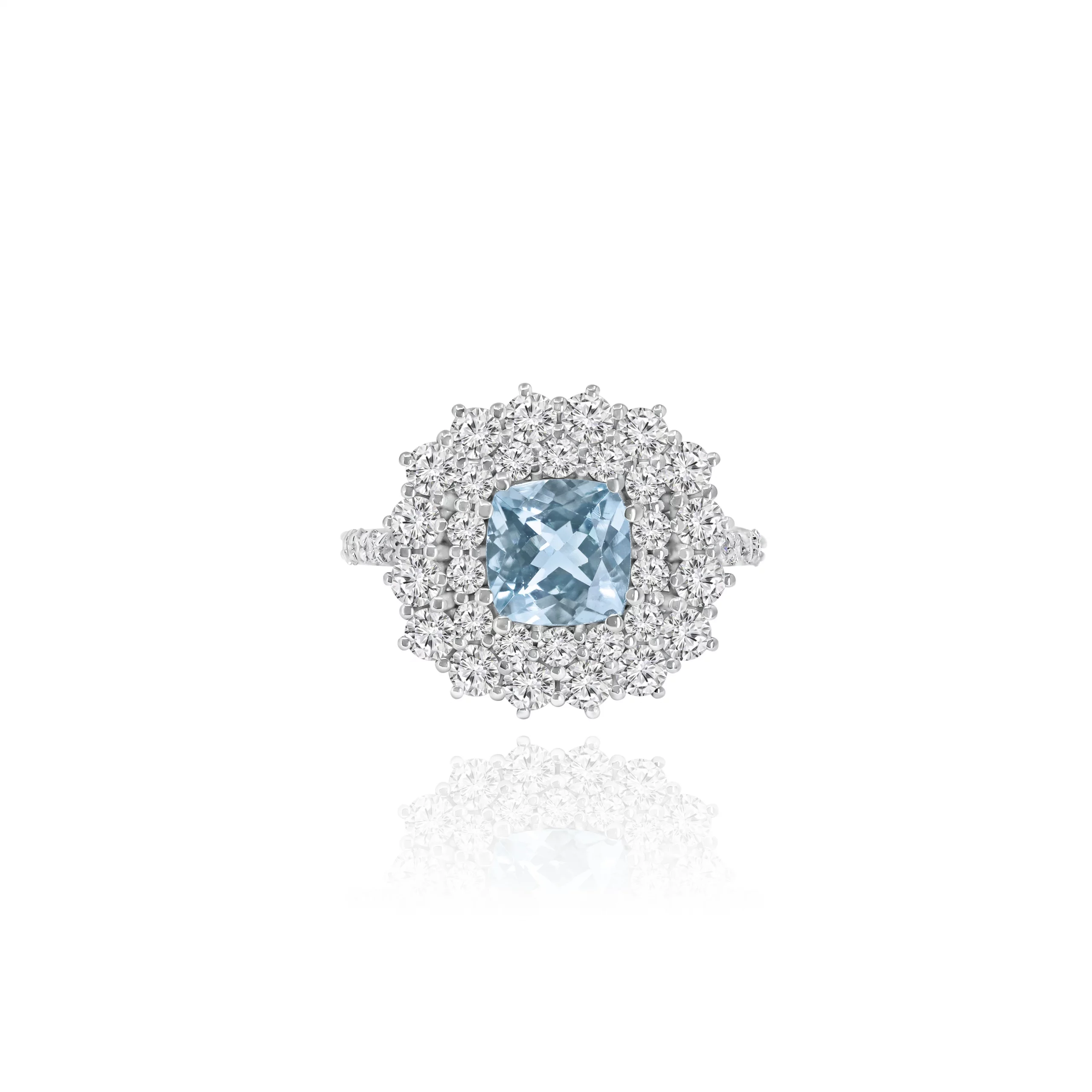 Anello con Acquamarina Taglio Cushion e Diamanti in oro bianco 18 kt.