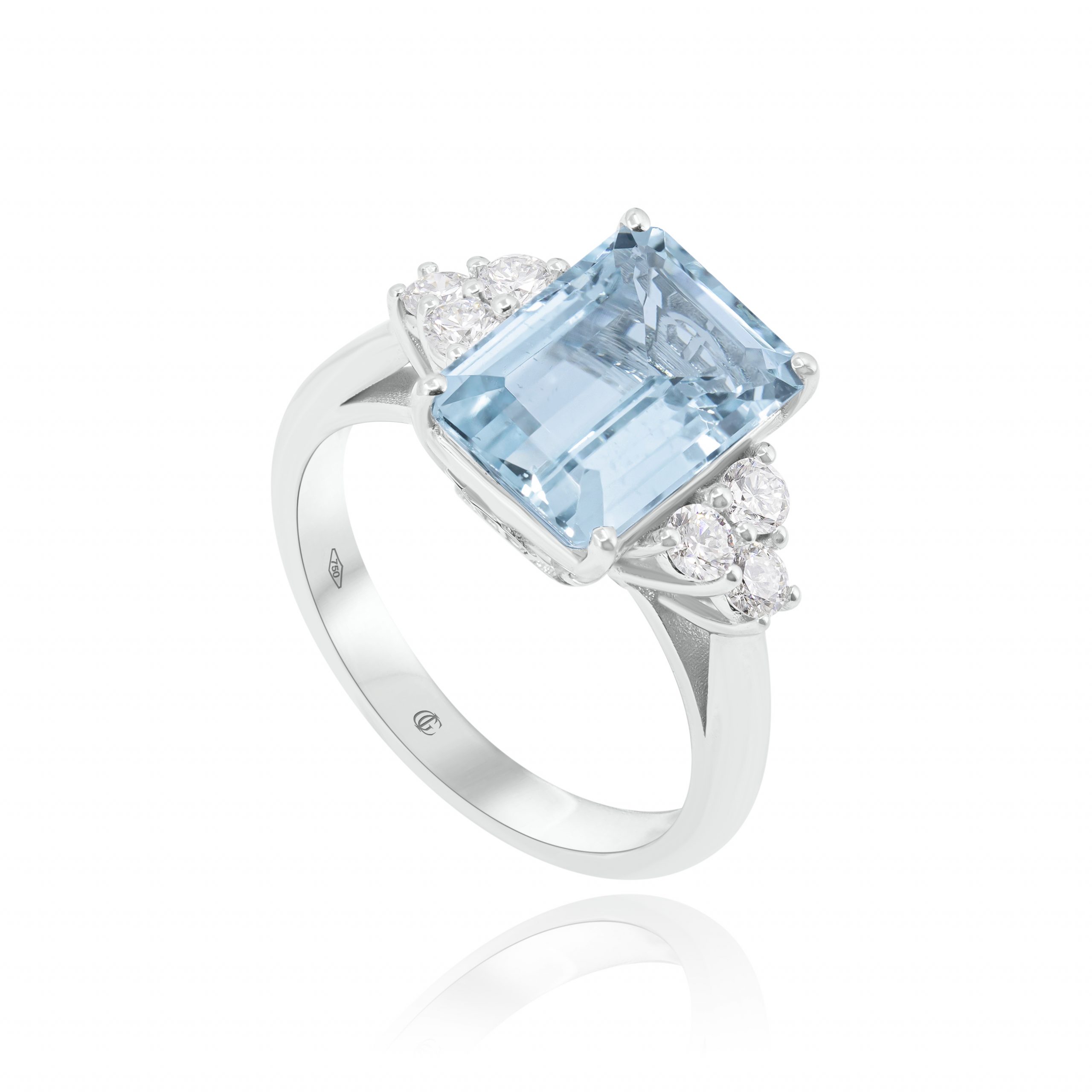 Anello con Acquamarina e Diamanti in oro bianco 18 kt.