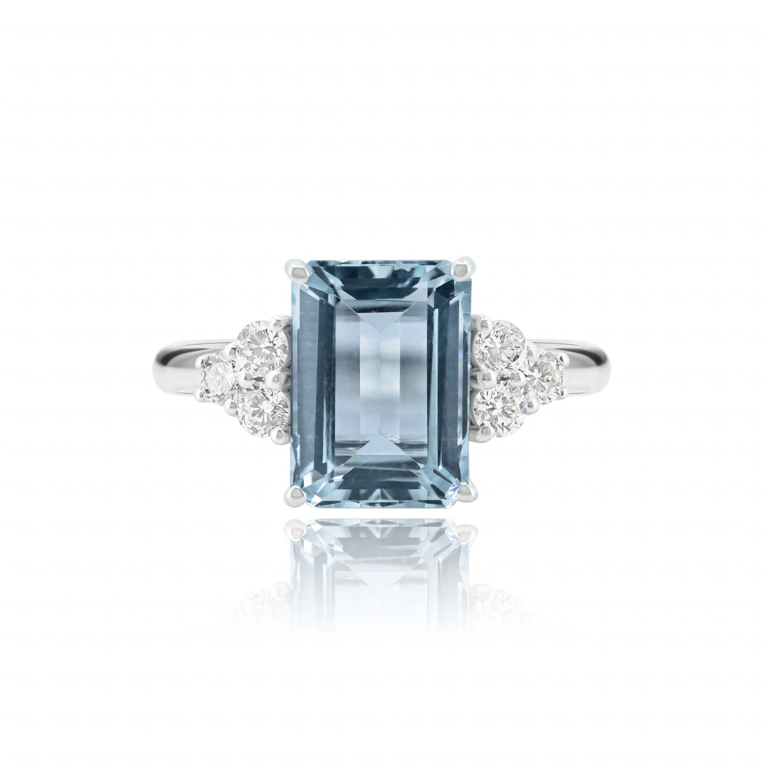 Anello con Acquamarina e Diamanti in oro bianco 18 kt: