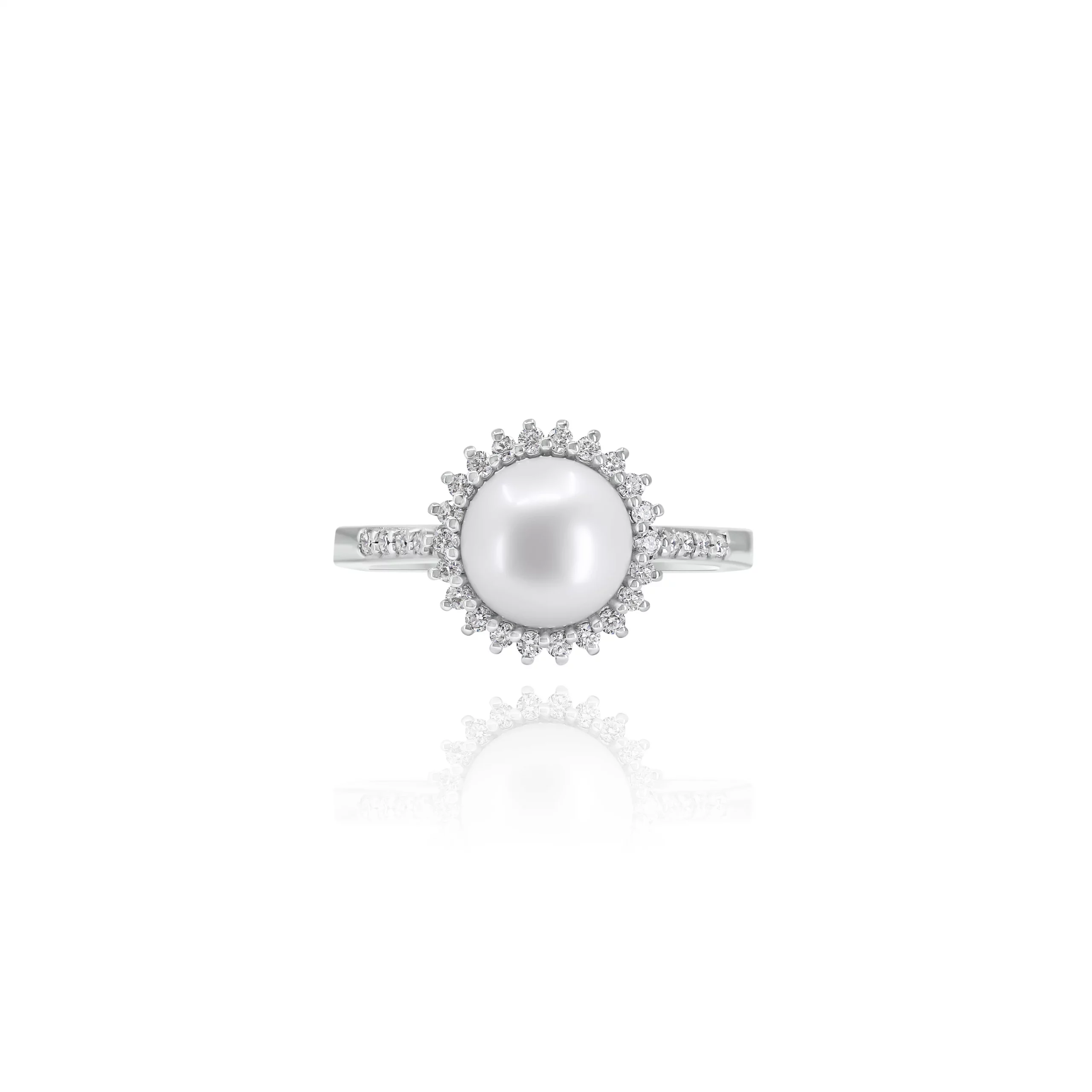 Anello in oro bianco 18 kt con Perla Akoya e Diamanti: