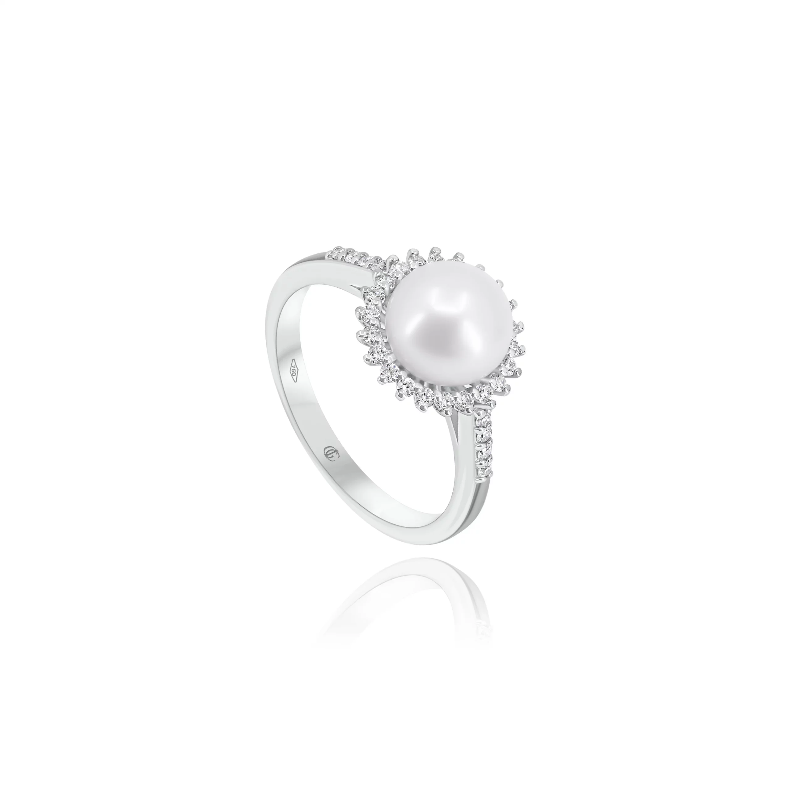Anello in oro bianco 18 kt con Perla Akoya e Diamanti.