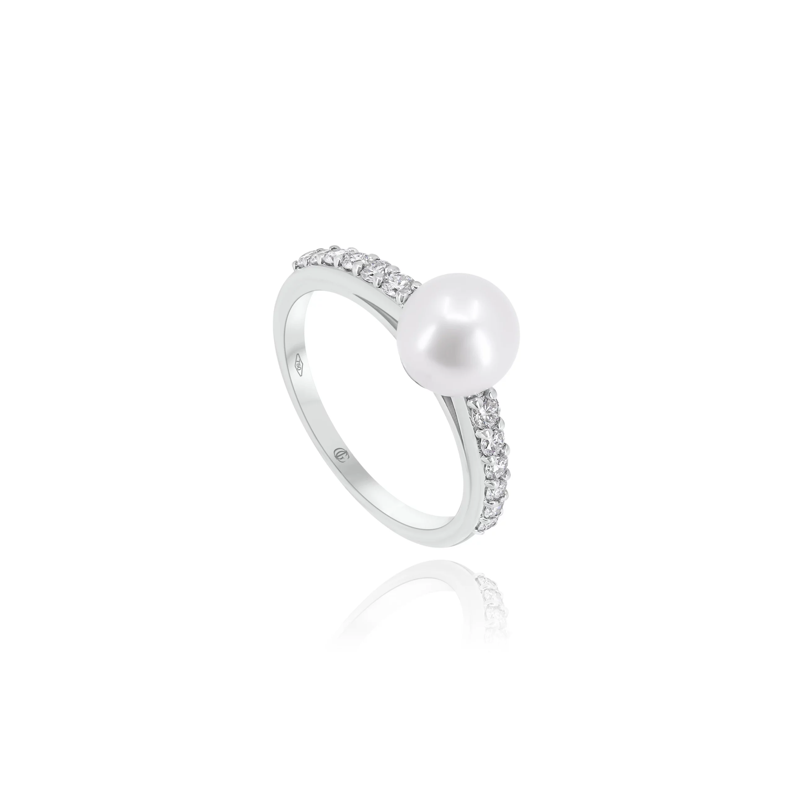 Anello in oro bianco 18 kt con Perla In Acqua Dolce e Diamanti.