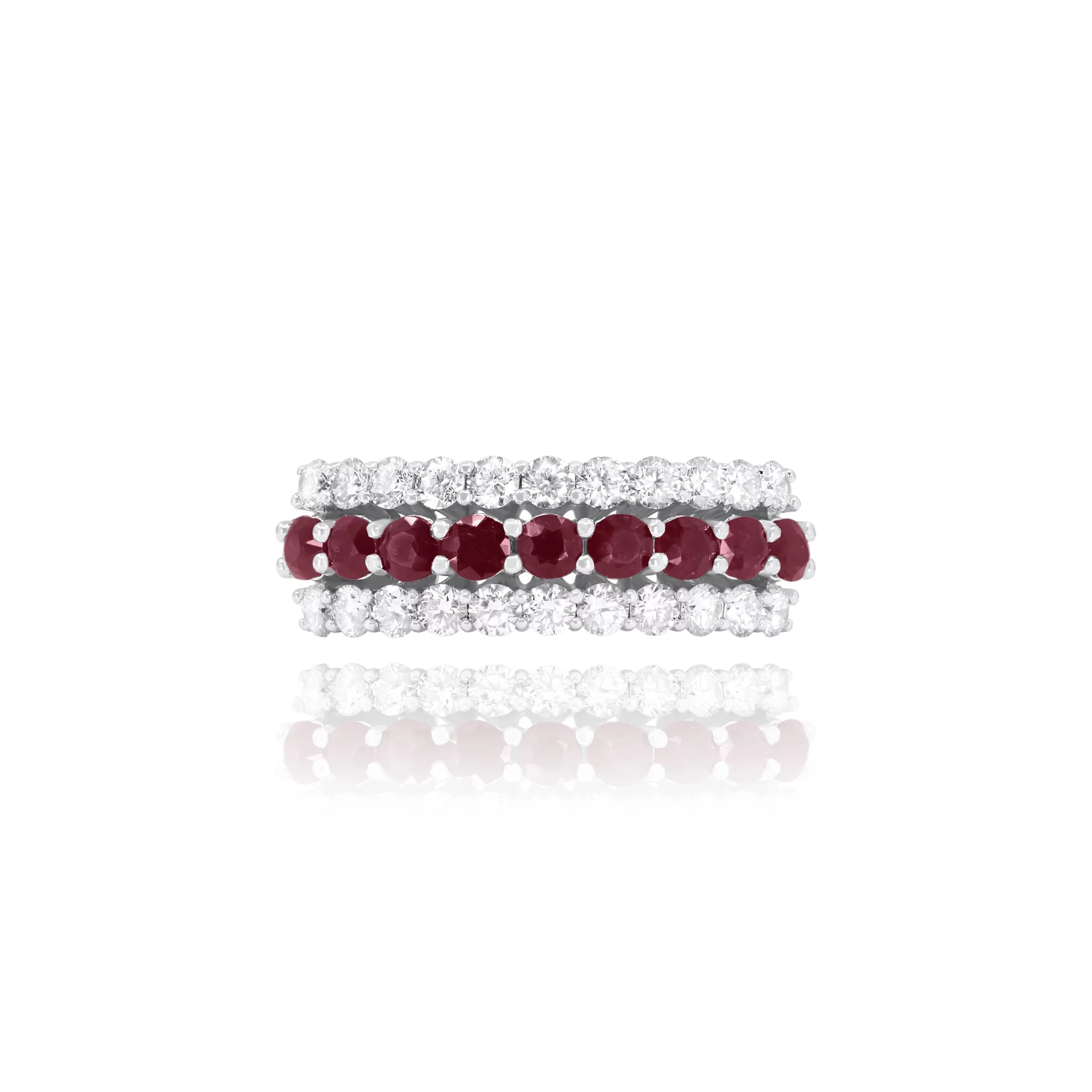 Anello con Rubini e Diamanti in oro bianco 18 kt: