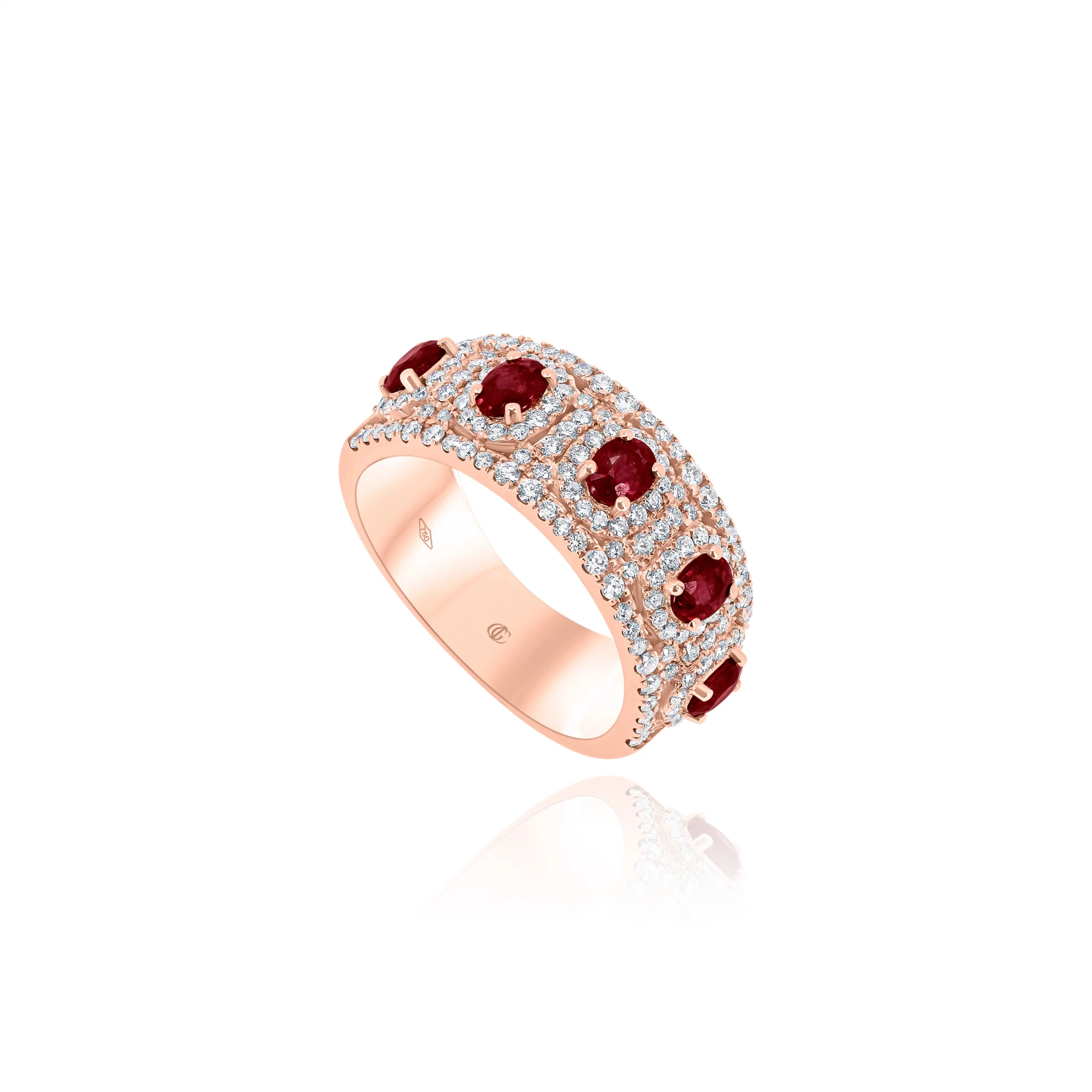 Anello con Rubini e Diamanti in oro rosa 18kt.