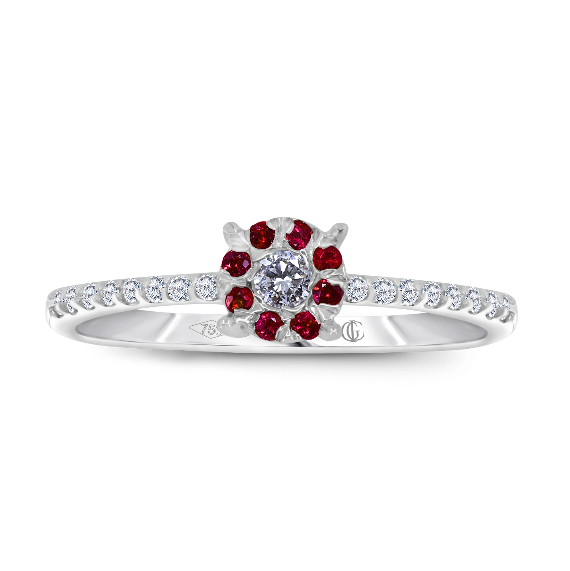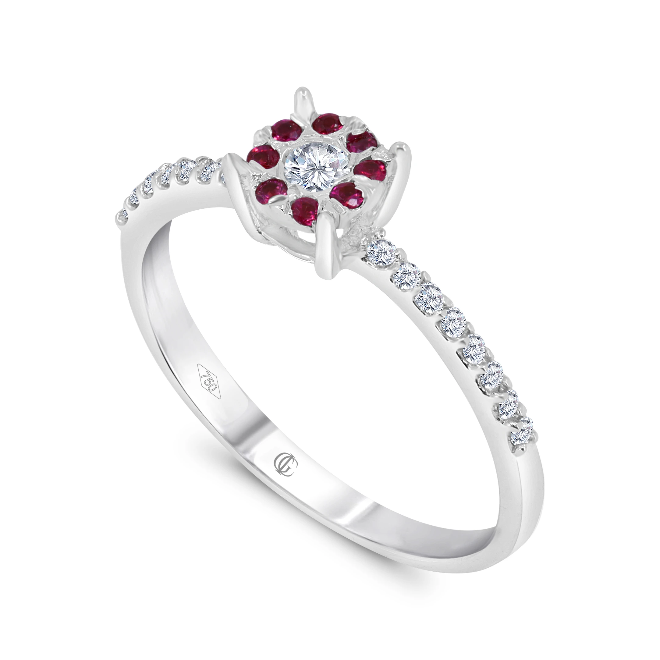 Anello con Rubini e Diamanti in oro bianco 18 kt :