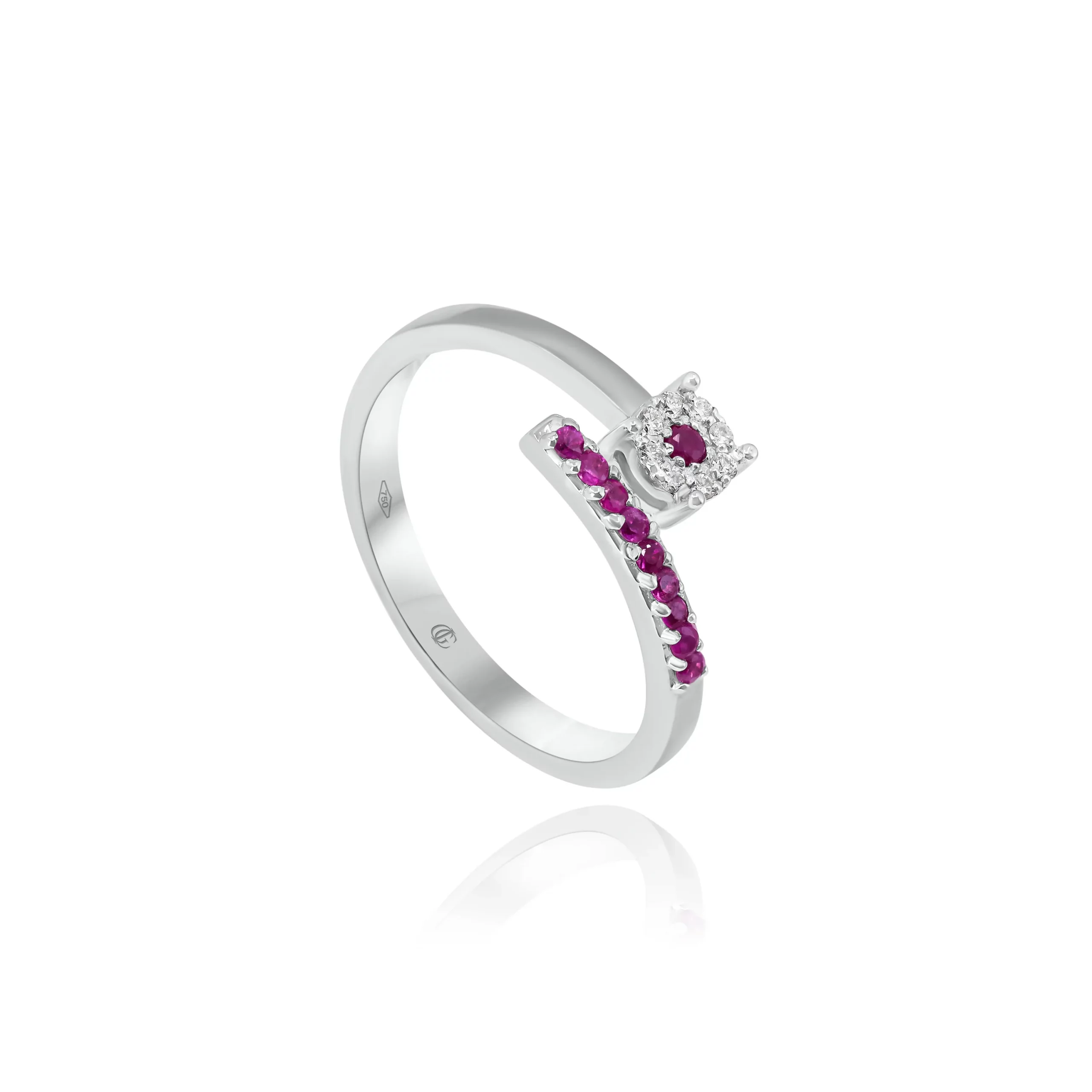 Anello con Rubini e Diamanti in oro bianco 18 kt :