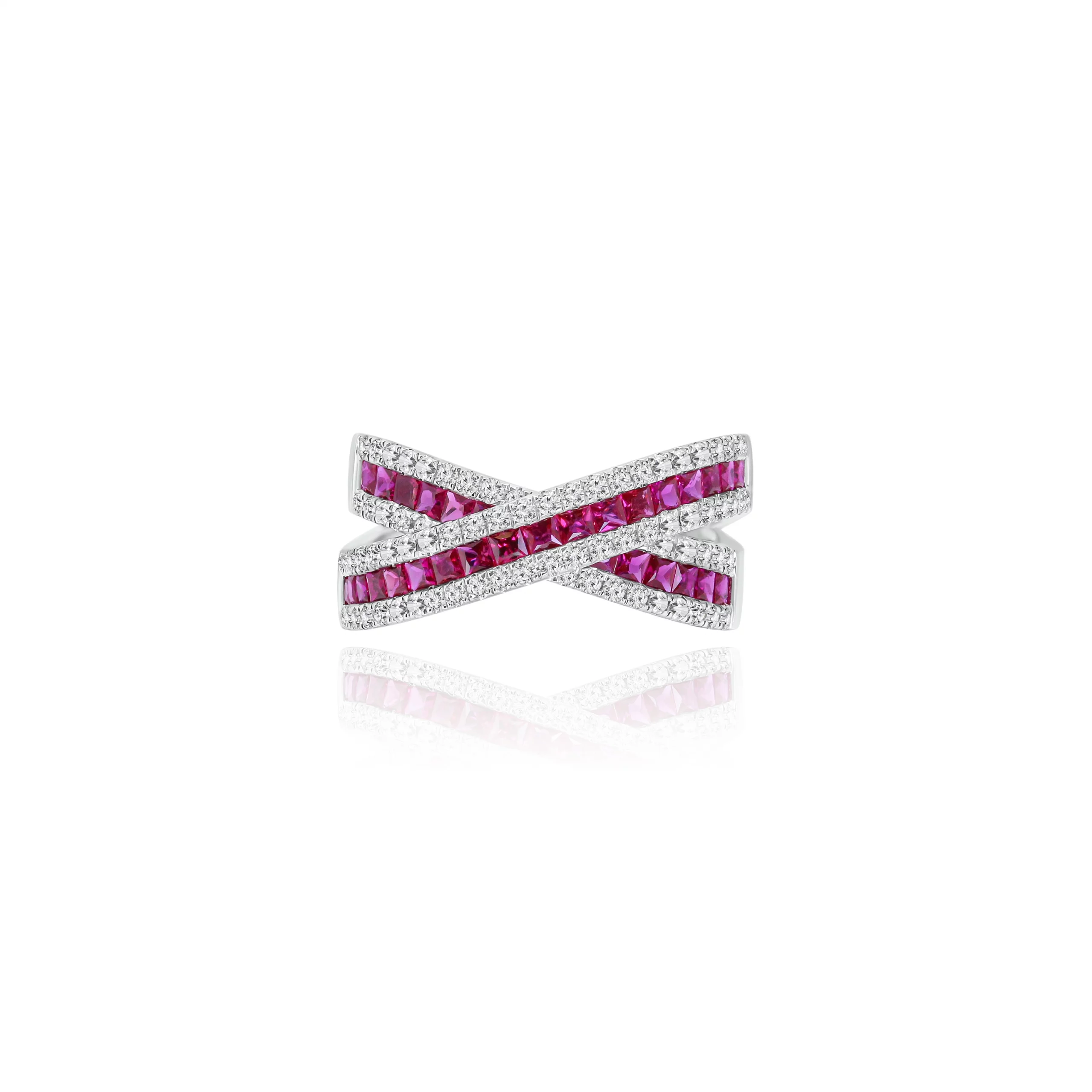 Anello con Rubini e Diamanti in oro bianco 18 kt :