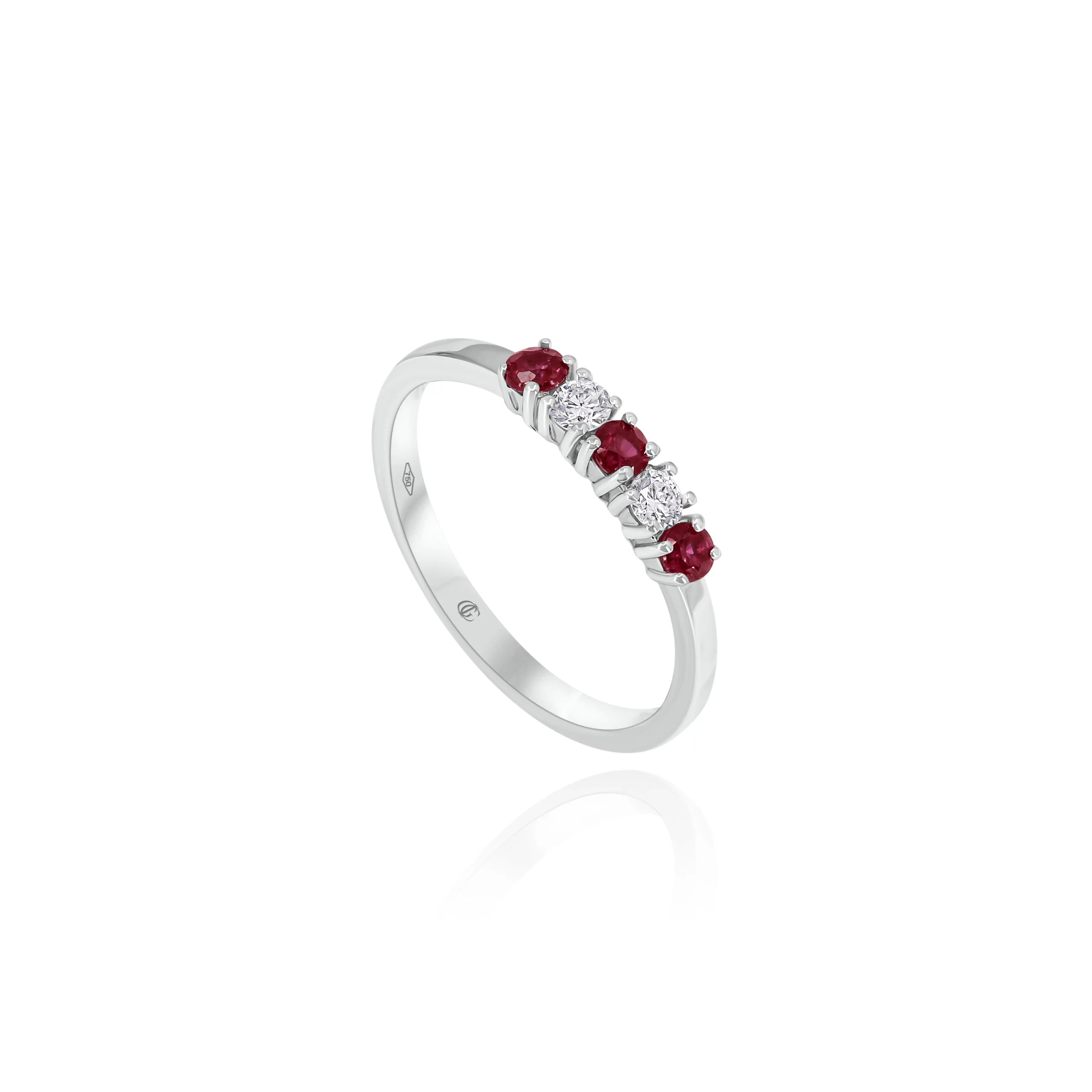 Anello con Rubini e Diamanti in oro bianco 18 kt :