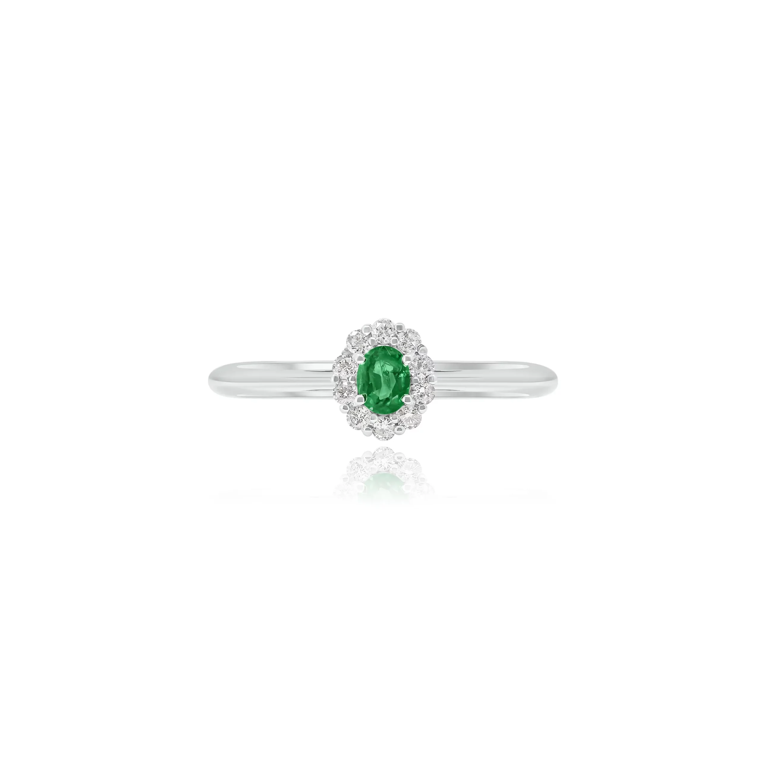 Anello con Smeraldo Ovale e Diamanti in oro bianco 18 kt, appartenente all’esclusiva collezione IGDC, disponibile in diverse carature: