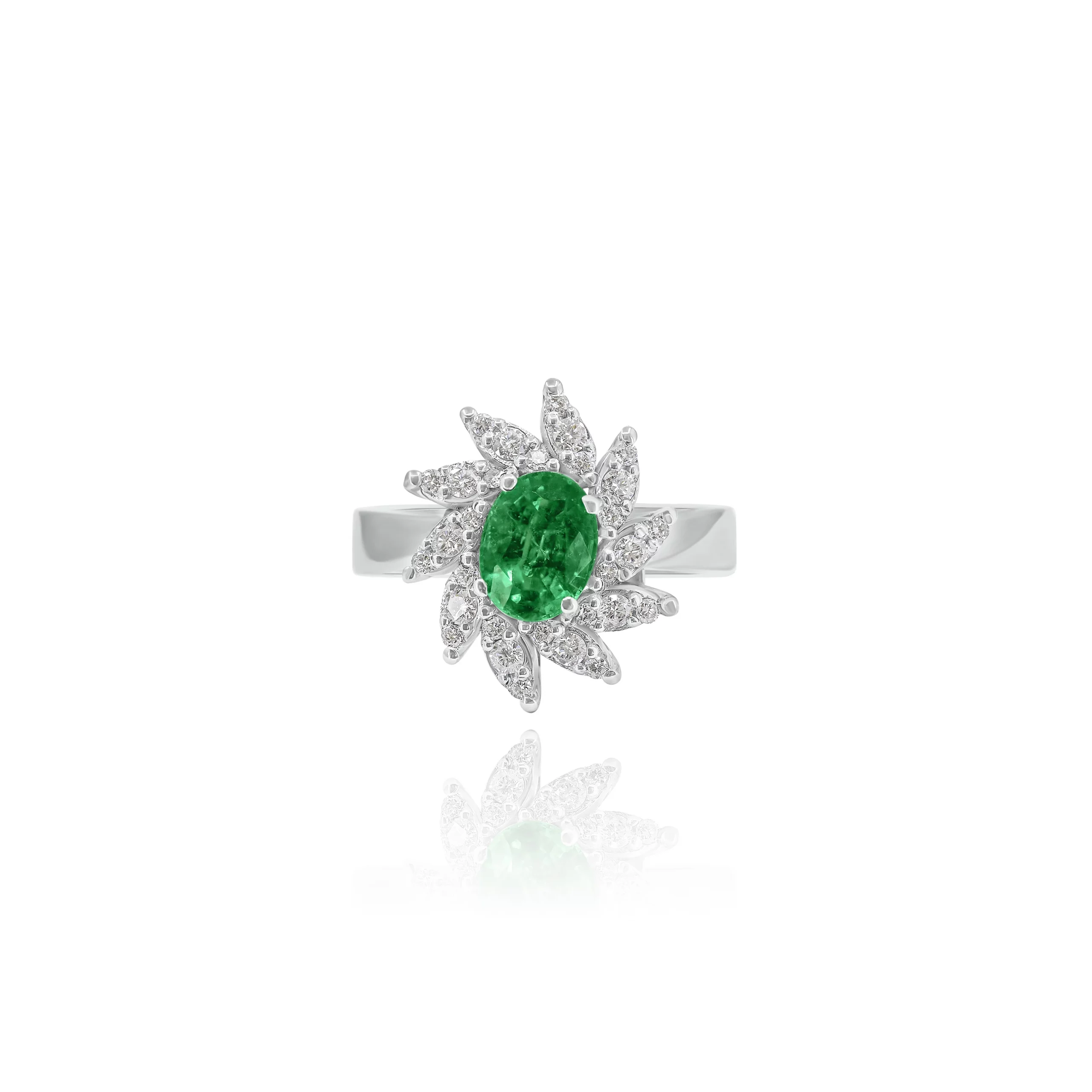 Anello con Smeraldo e Diamanti in oro bianco 18 kt, appartenente all’esclusiva collezione IGDC:
