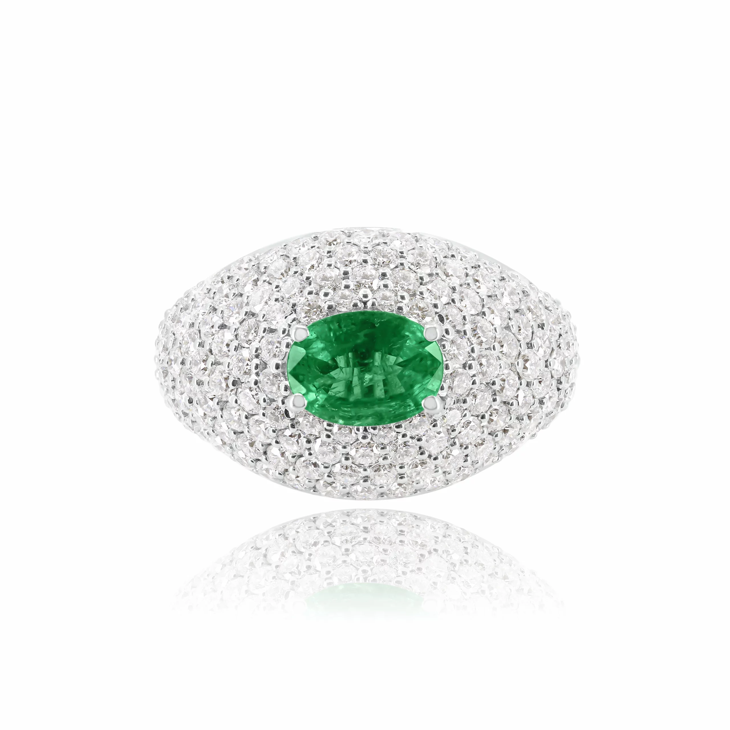 Anello con Smeraldo e Diamanti in oro bianco 18 kt: