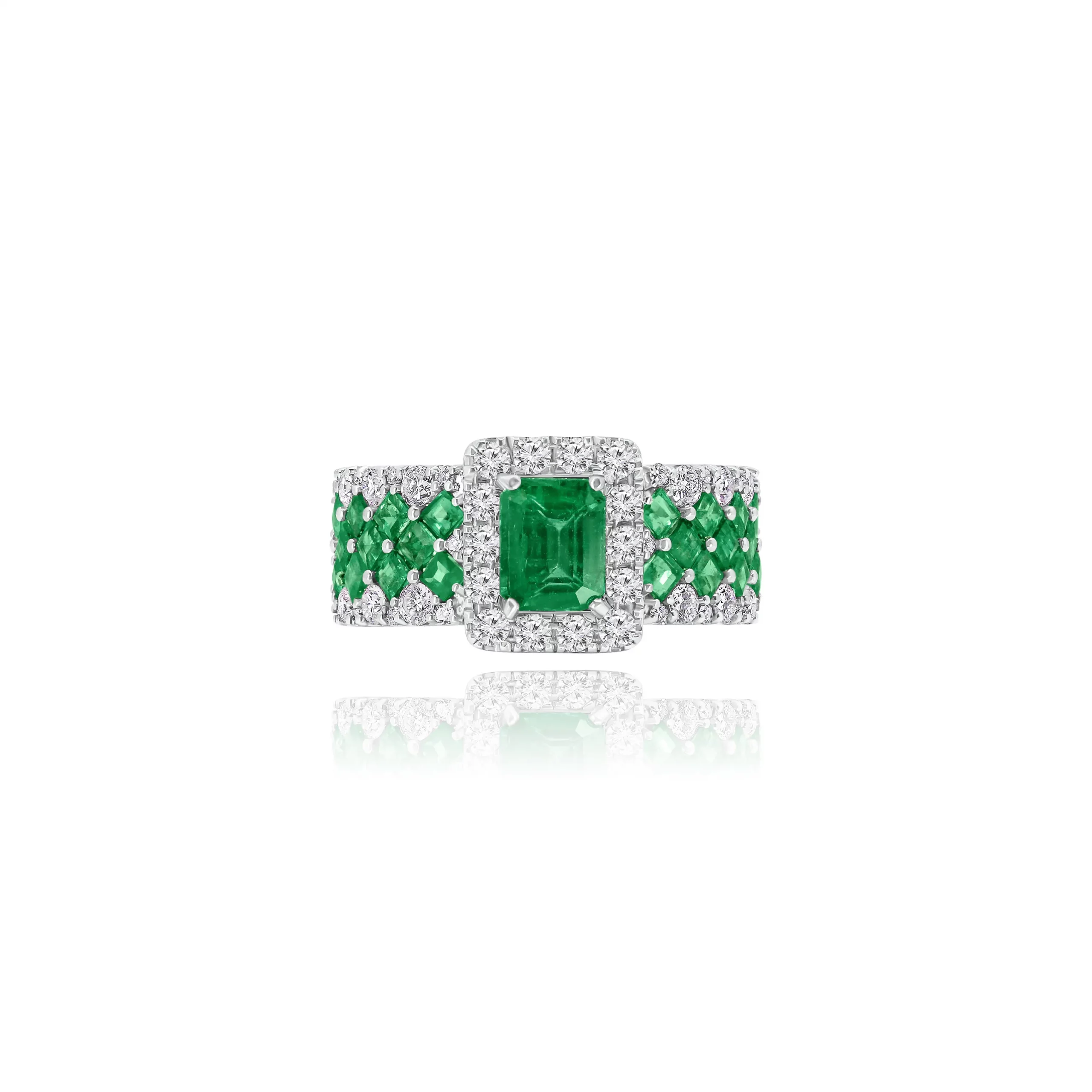 Anello con Smeraldo e Diamanti in oro bianco 18 kt.
