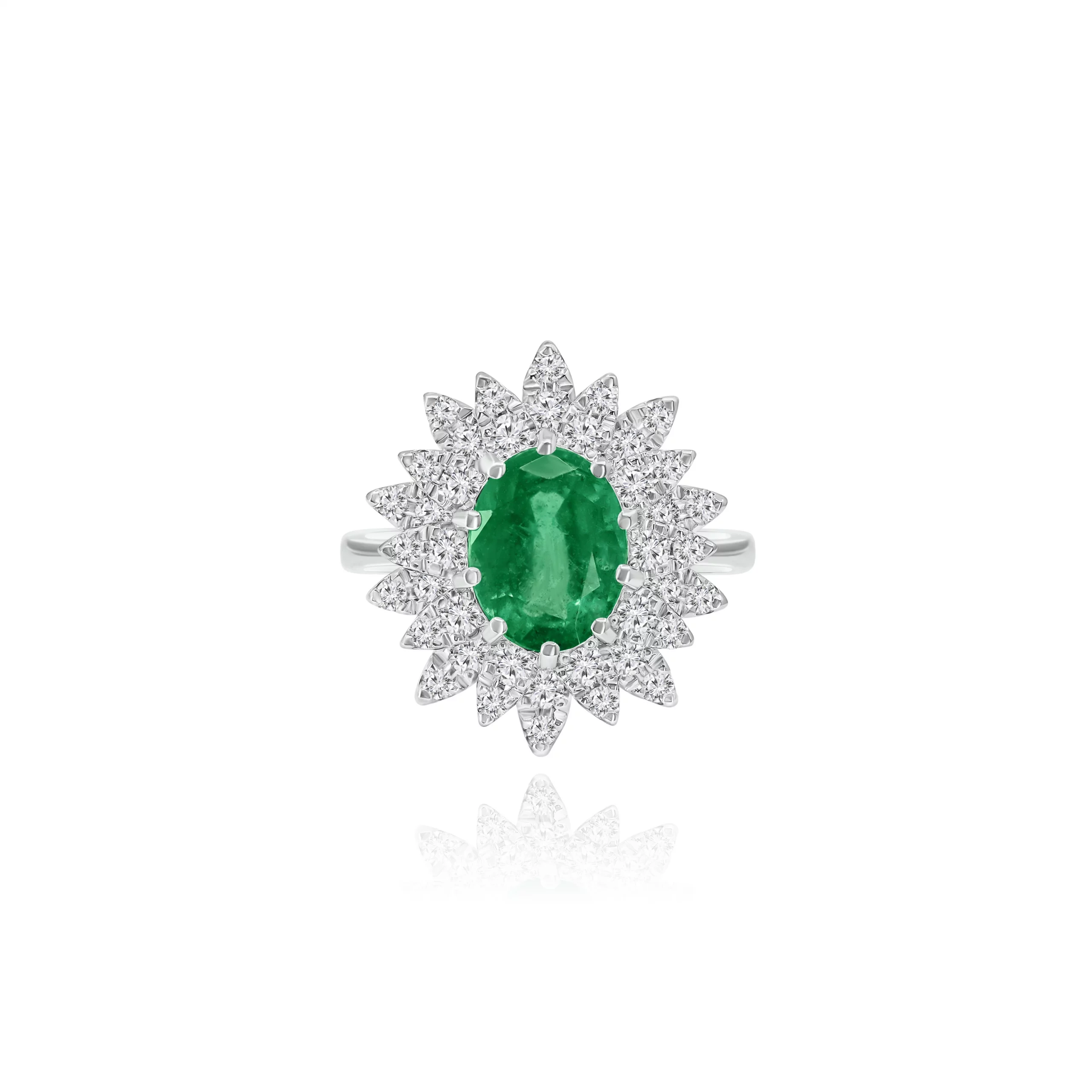 Anello con Smeraldo e Diamanti in oro bianco 18 kt