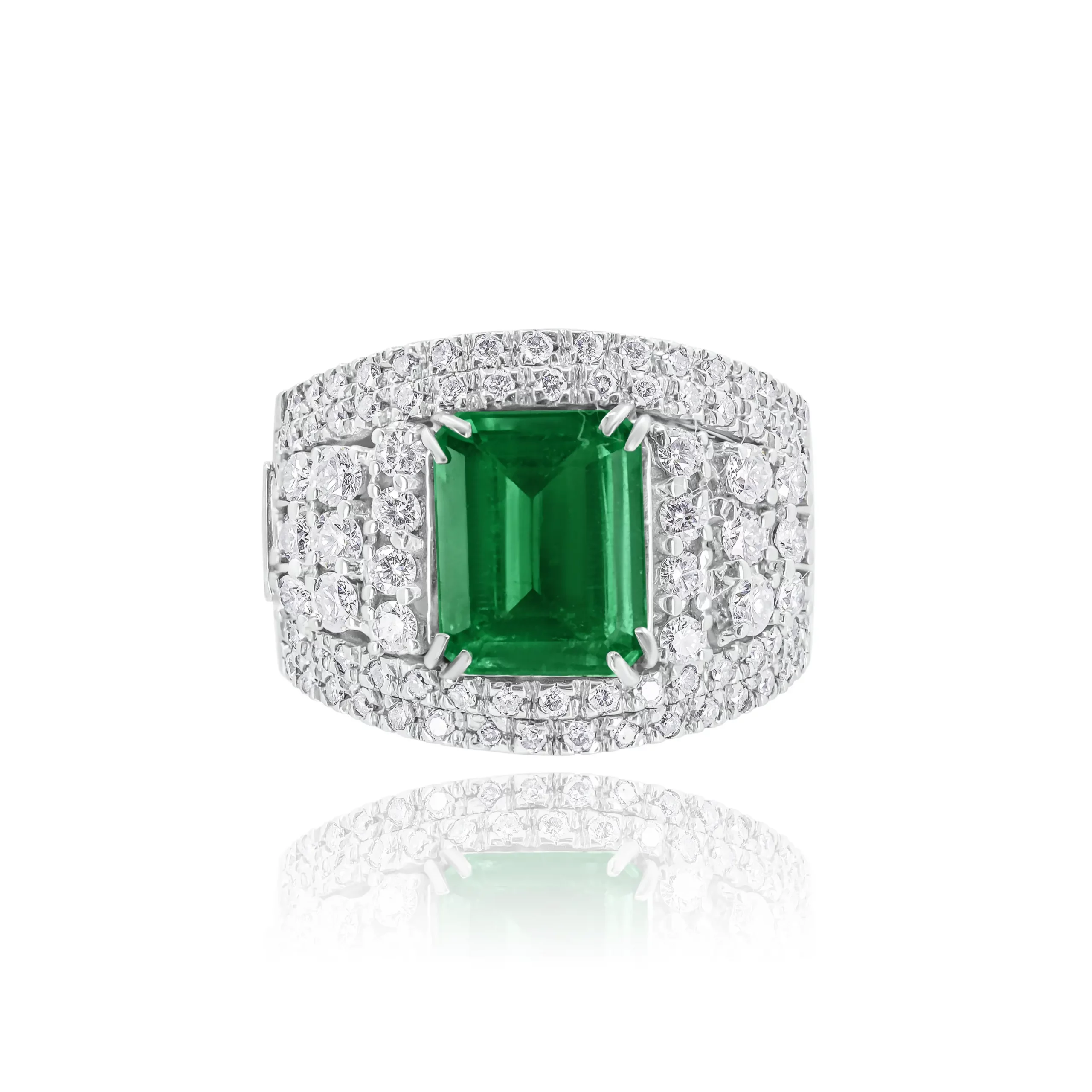 Anello con Smeraldo e Diamanti in oro bianco 18 kt.