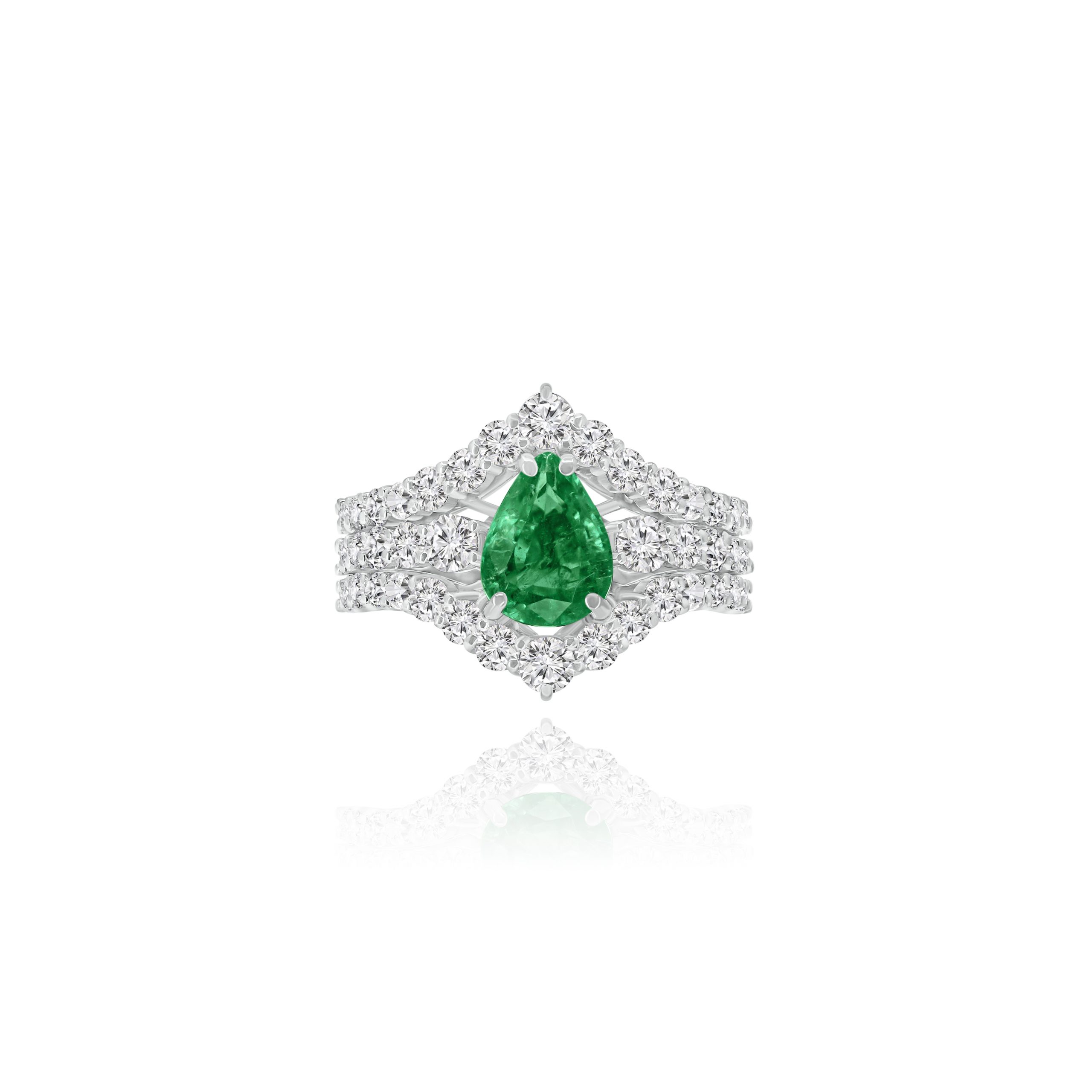 Anello con Smeraldo Taglio Goccia e Diamanti in oro bianco 18 kt.