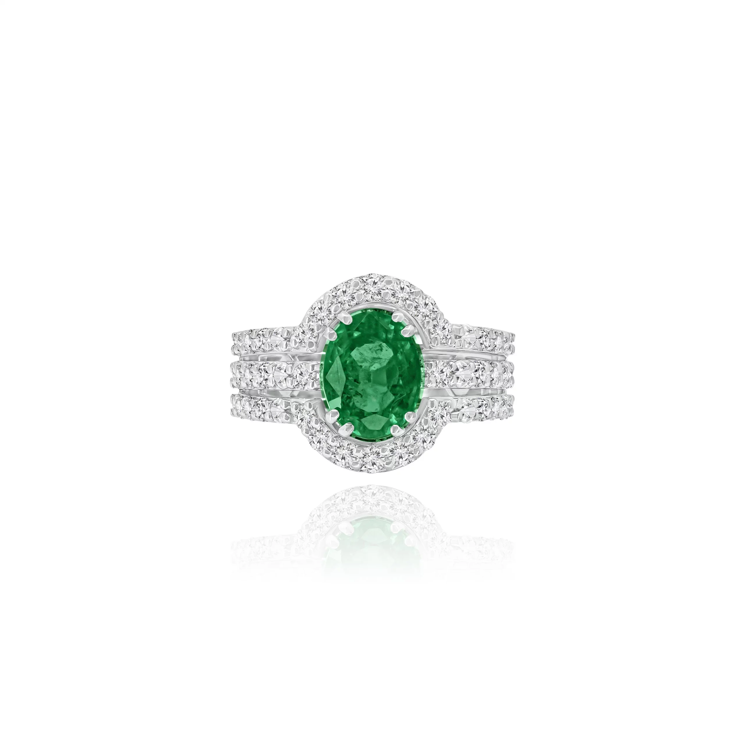 Anello con Smeraldo Ovale e Diamanti in oro bianco 18 kt.