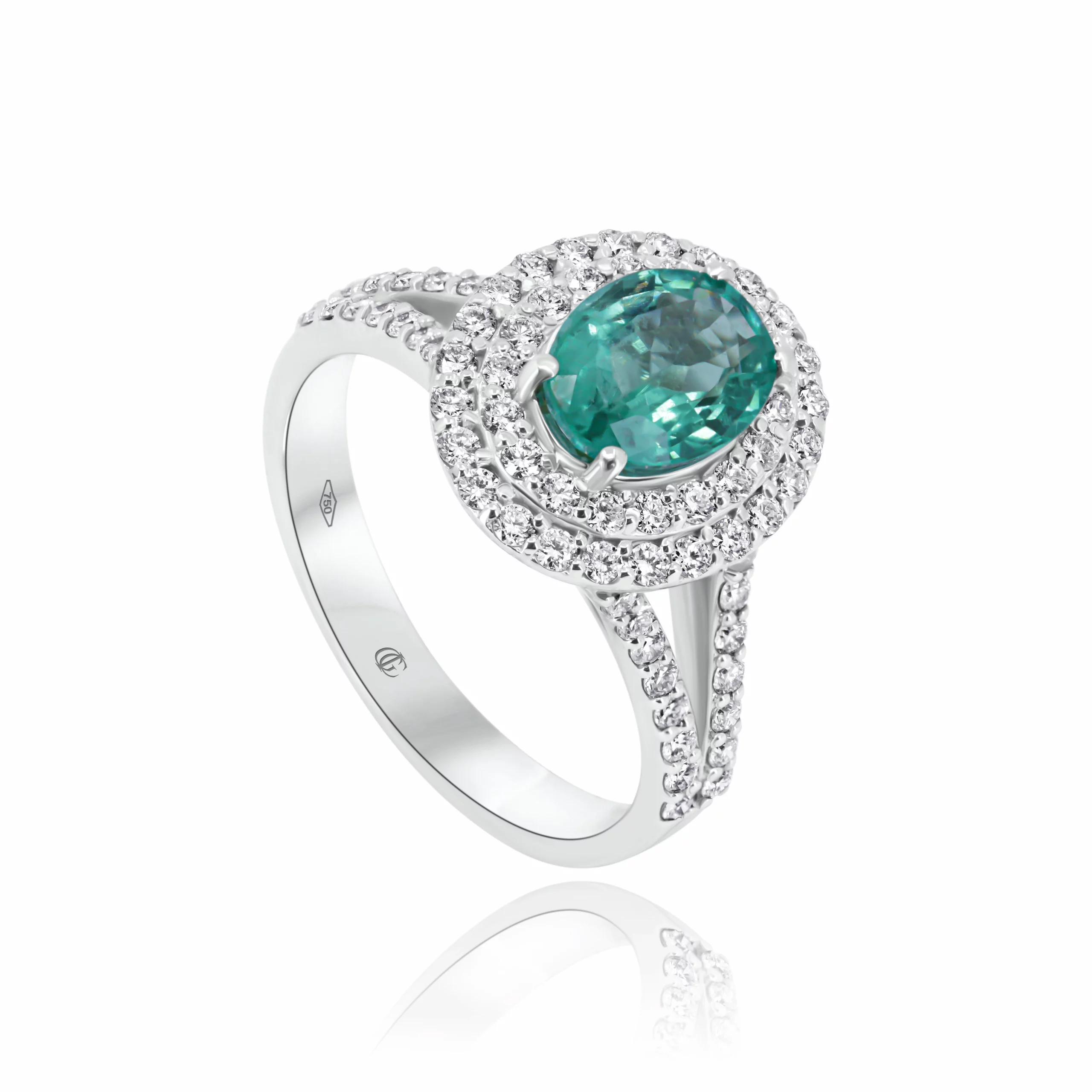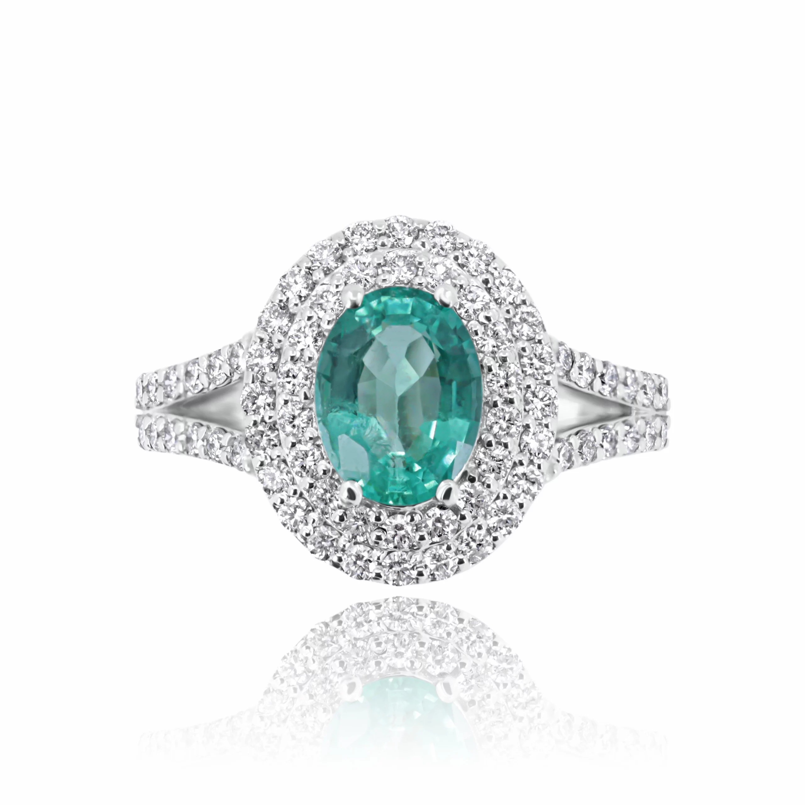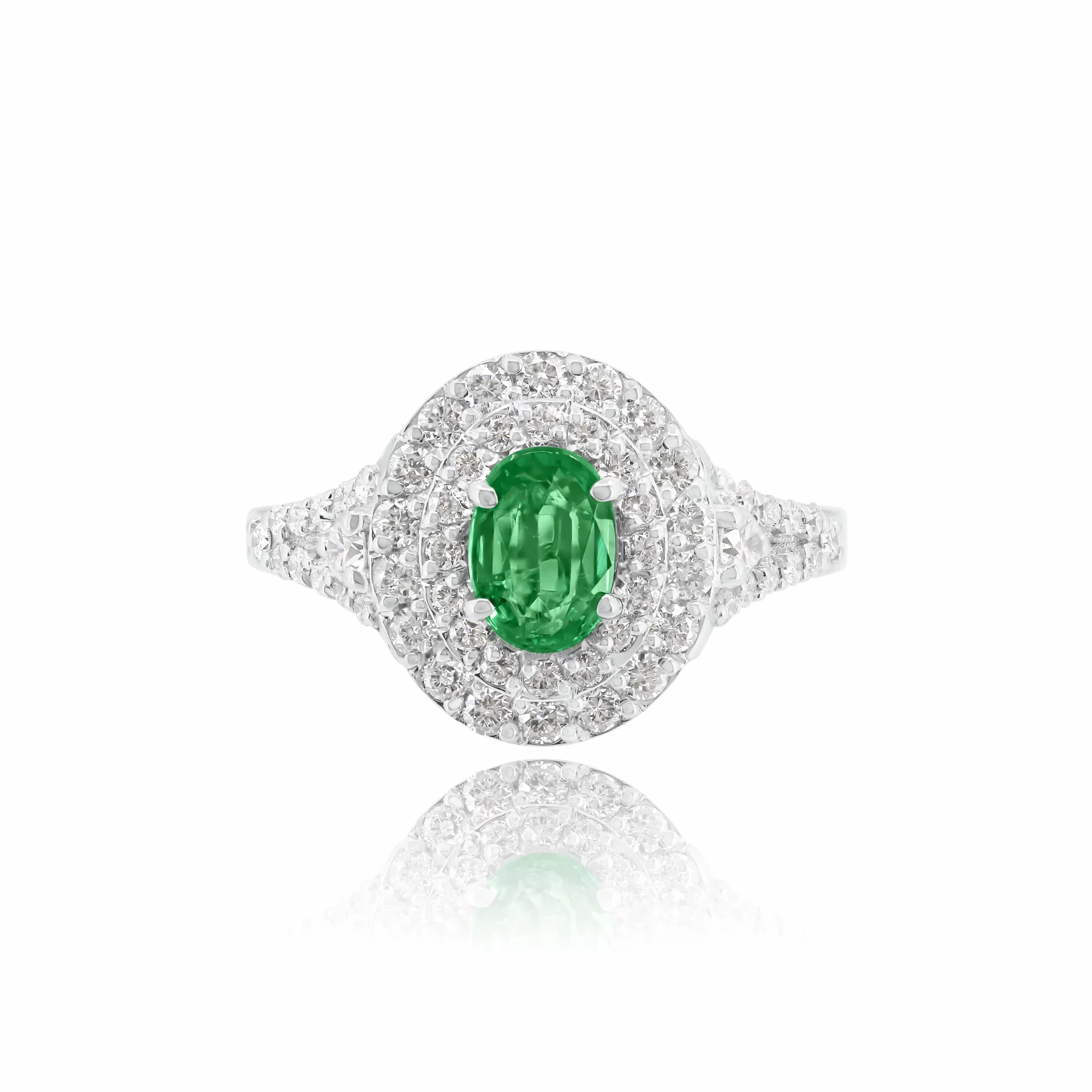 Anello con Smeraldo Ovale e Diamanti in oro bianco 18 kt, disponibile in diverse carature.