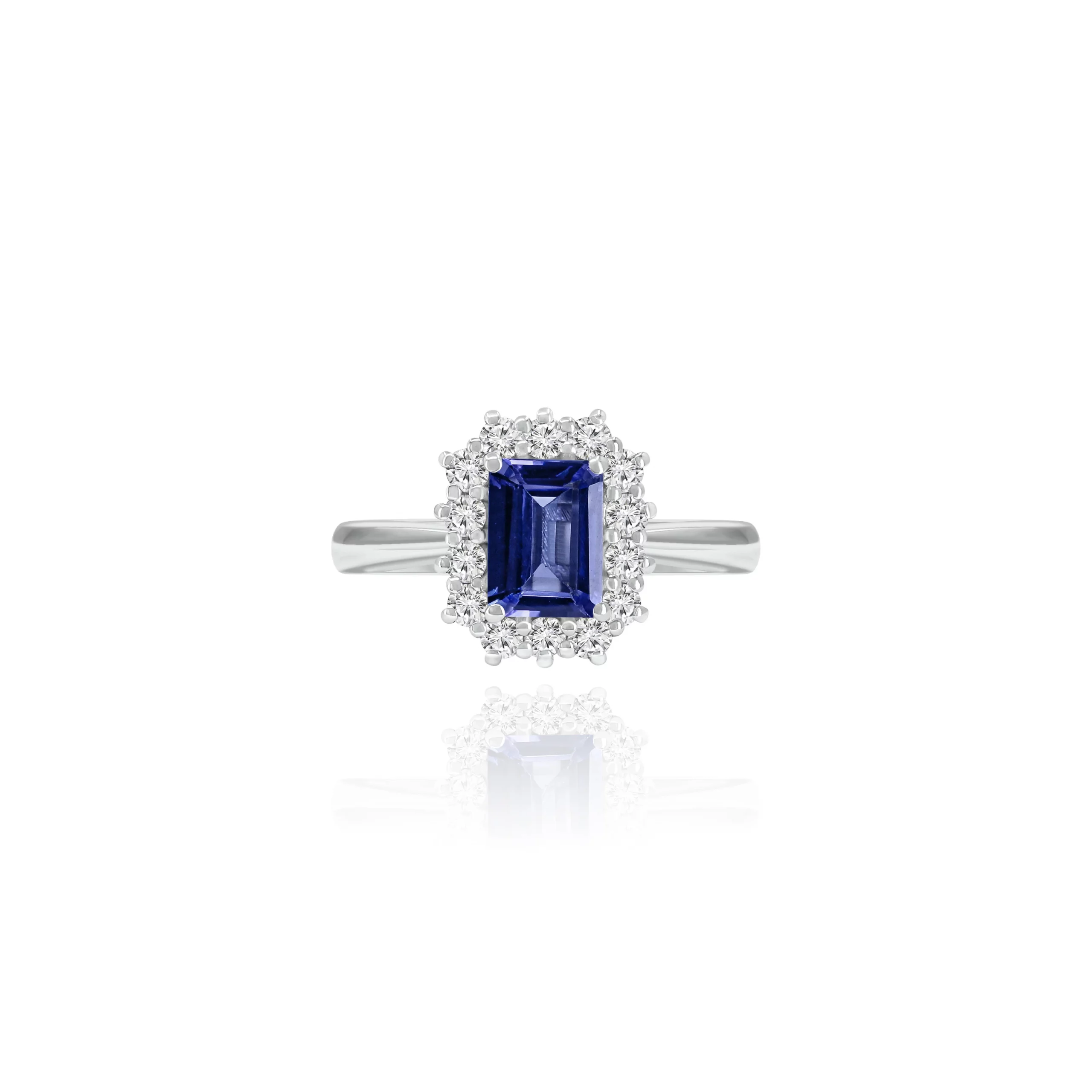 Anello in oro bianco 18 kt con Tanzanite e Diamanti, disponibile in diverse carature.