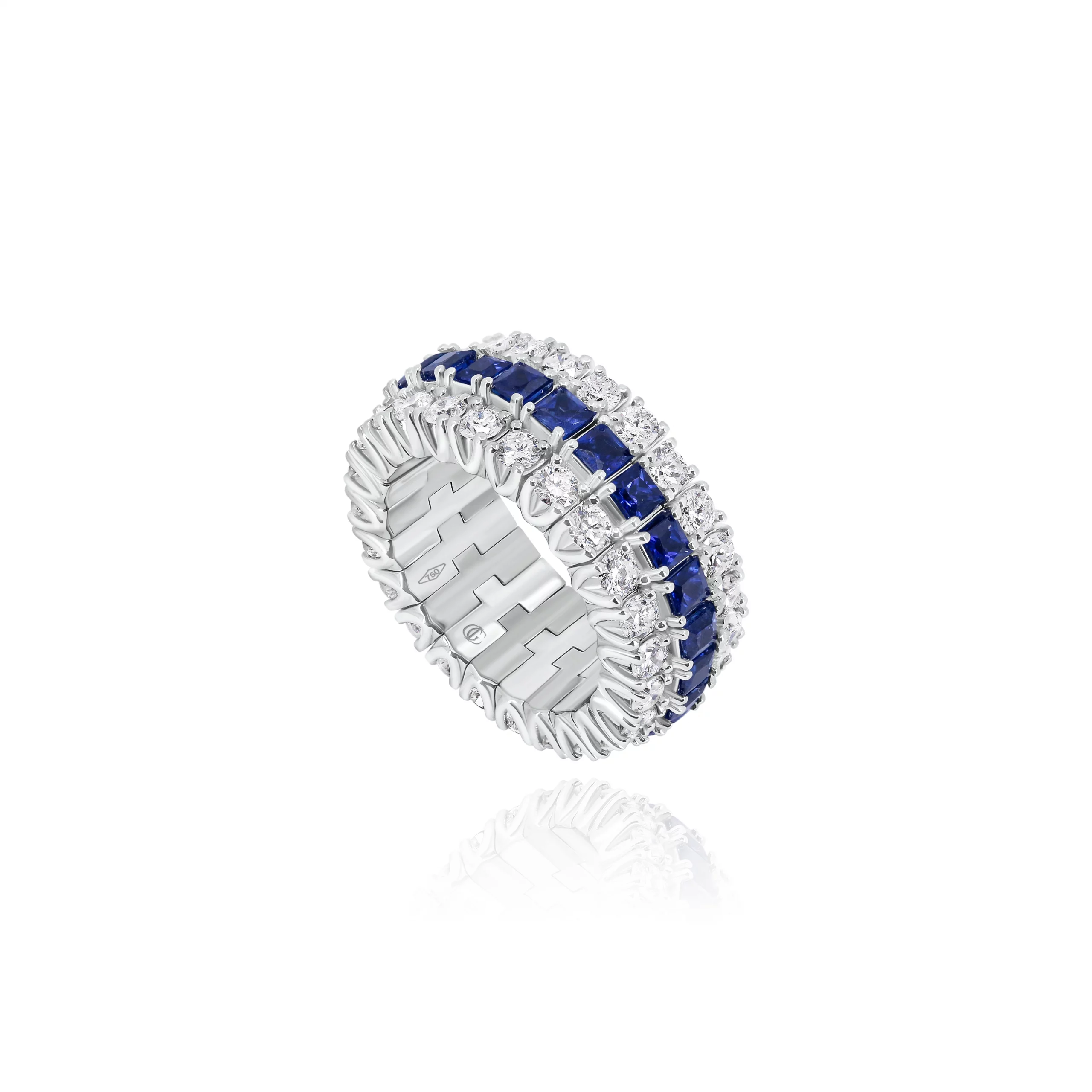 Anello Eternity A Fascia in oro bianco 18 kt con Zaffiri e Diamanti: