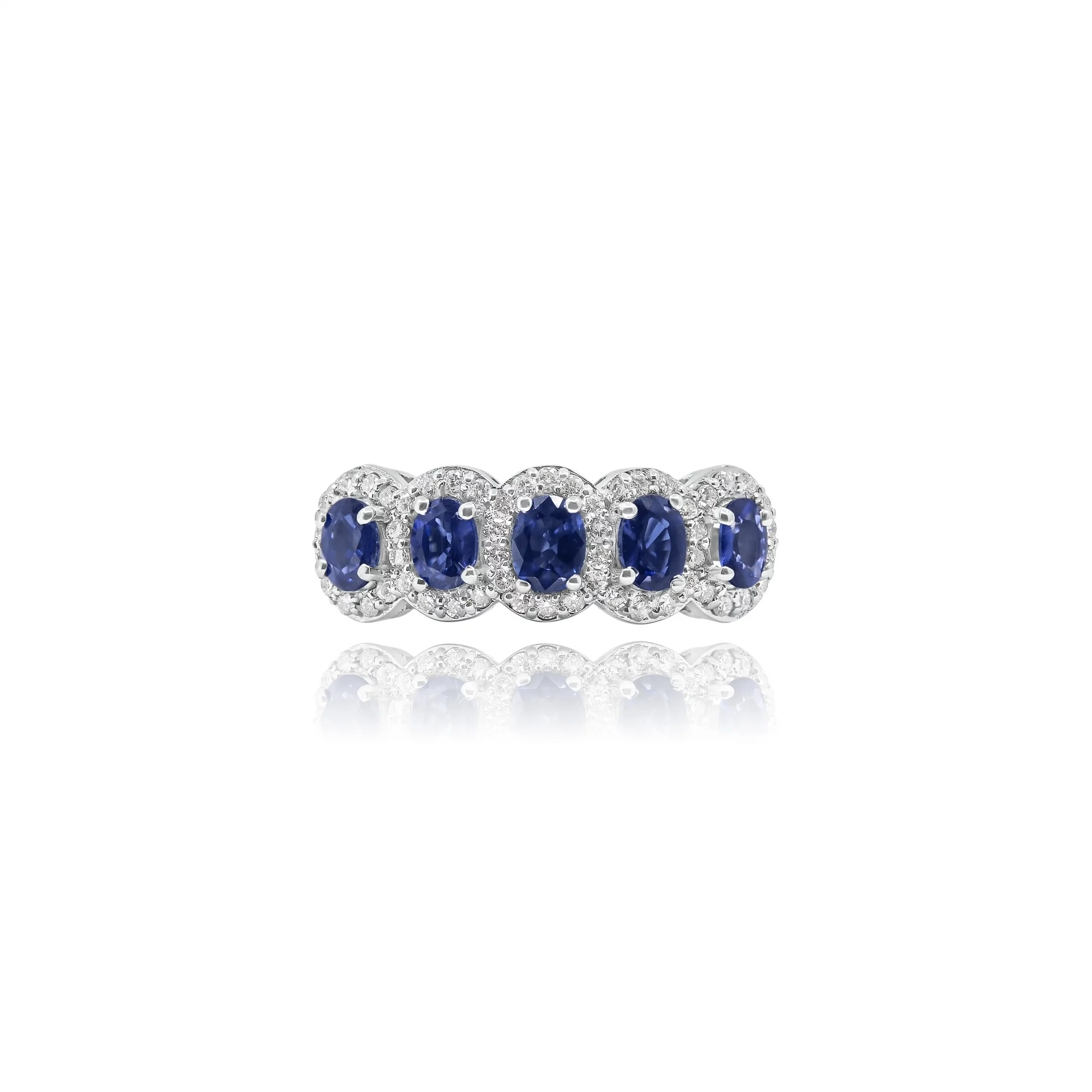 Anello Veretta con Zaffiri e Diamanti in oro bianco 18 kt, appartenente all’esclusiva collezione IGDC:
