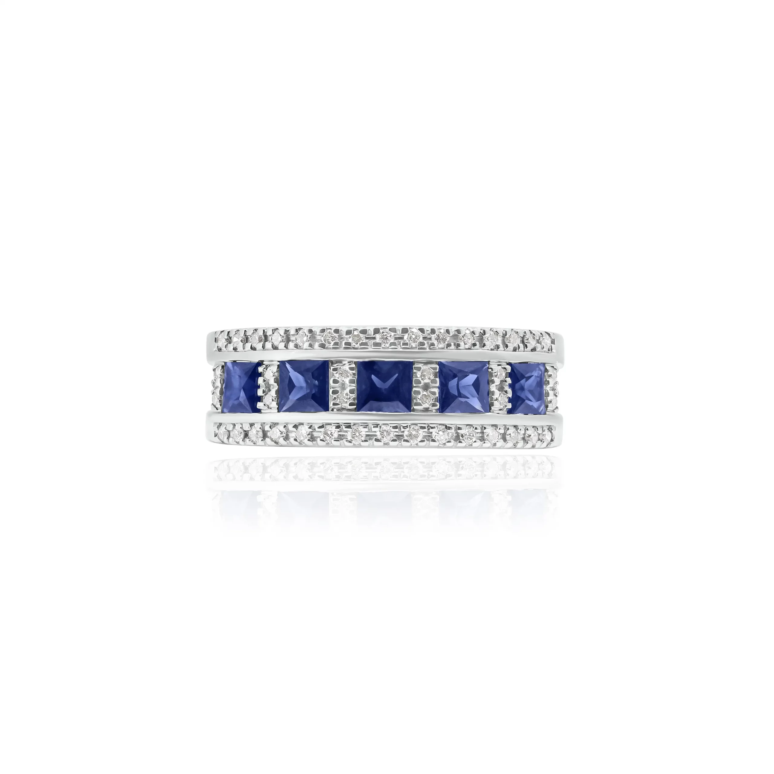 Anello con Zaffiri e Diamanti in oro bianco 18 kt.