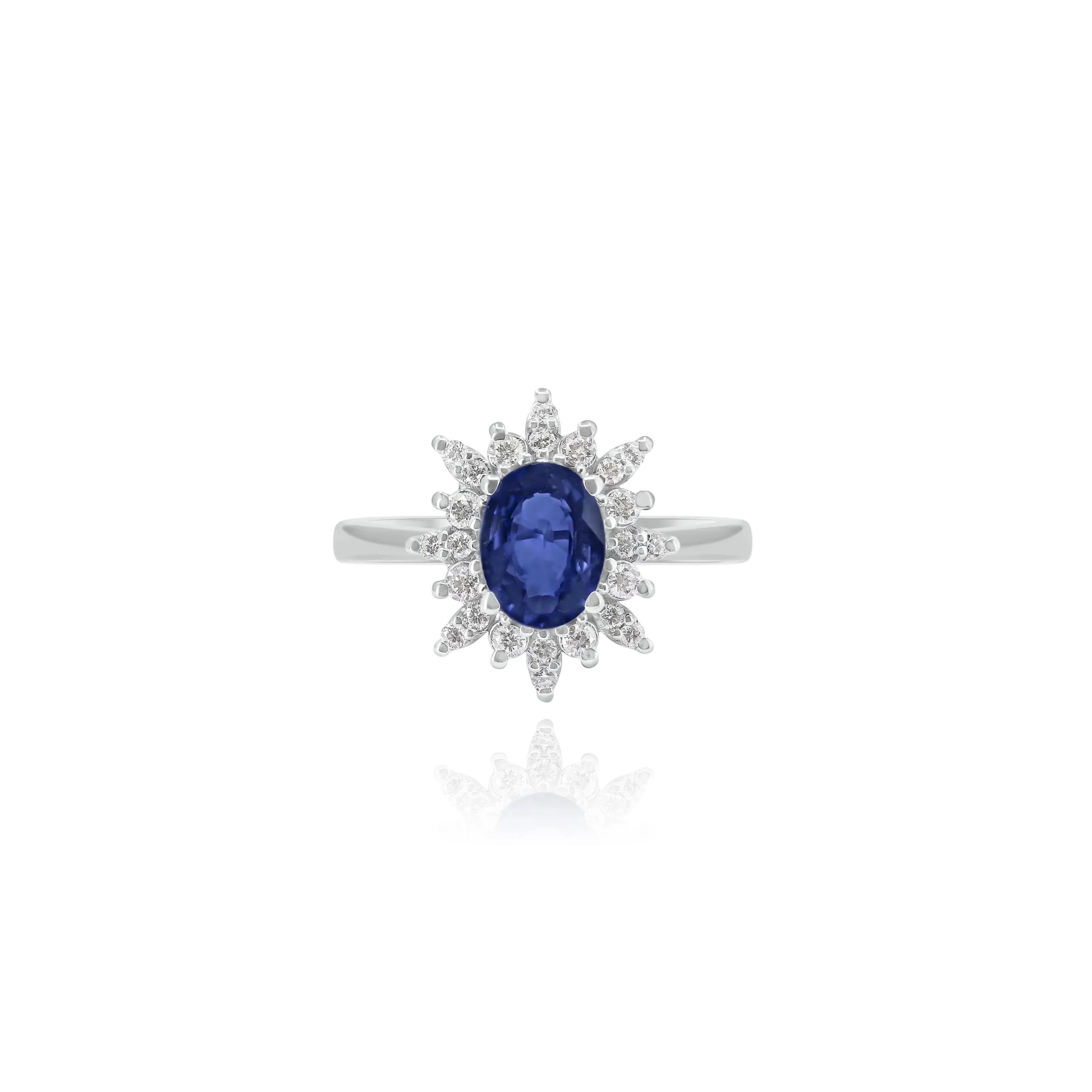 Anello con Zaffiro e Diamanti in oro bianco 18 kt.