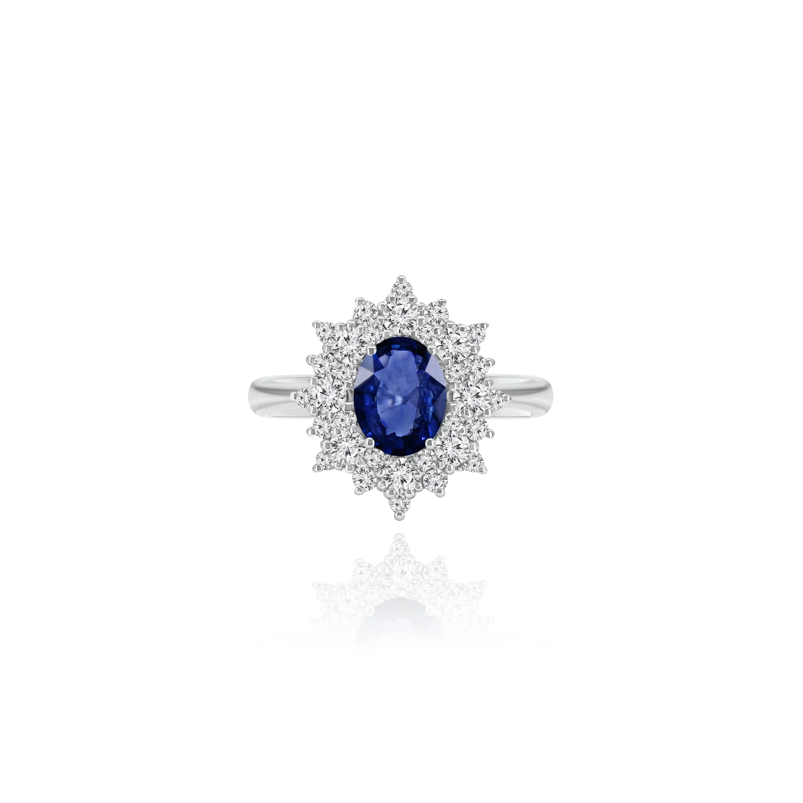 Anello con Zaffiro e Diamanti in oro bianco 18 kt.