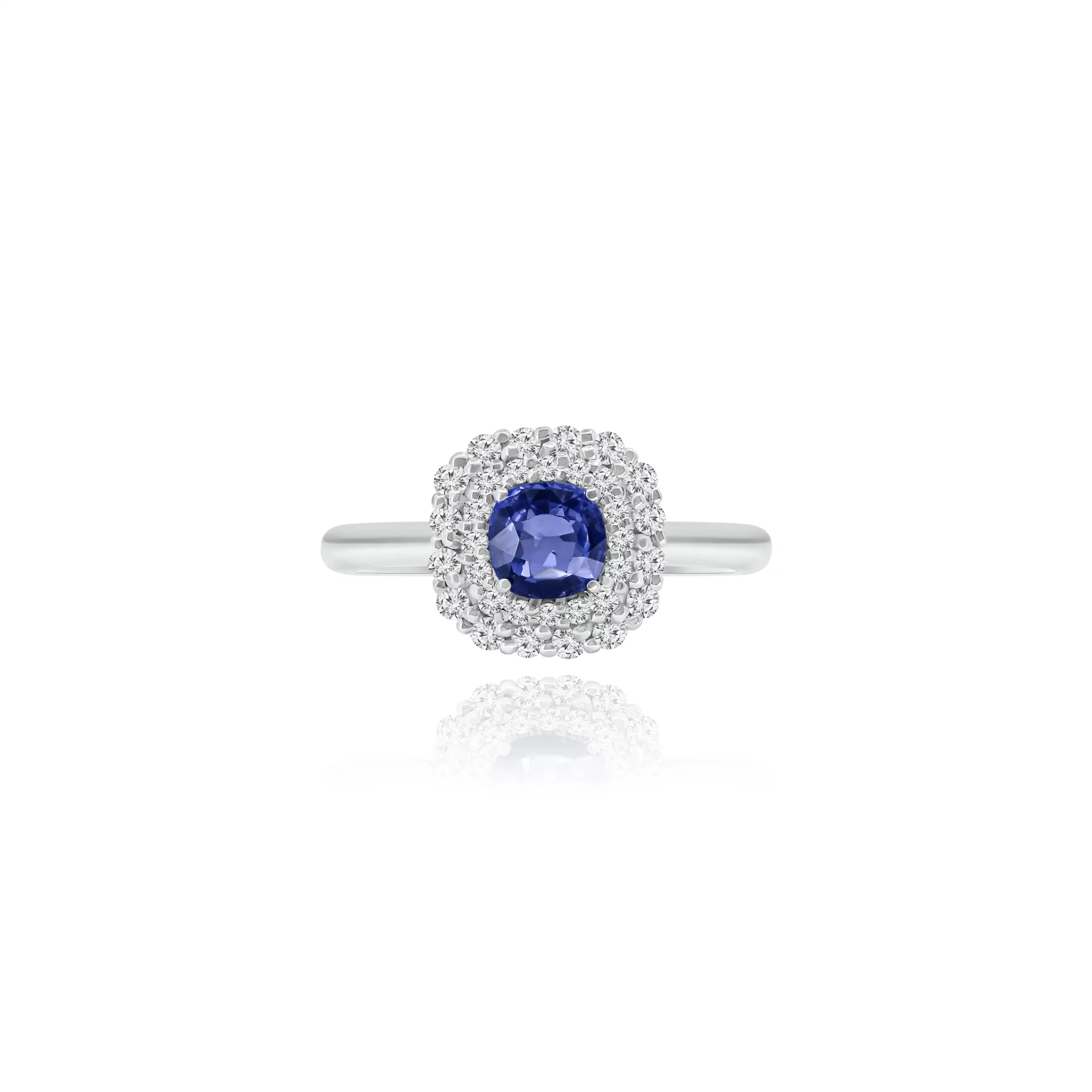 Anello con Zaffiro e Diamanti in oro bianco 18 kt, appartenente all’esclusiva collezione IGDC.
