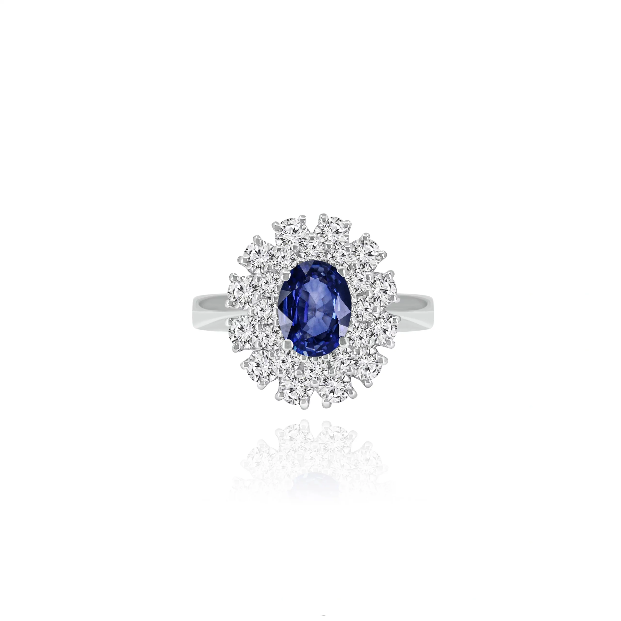 Anello con Zaffiro e Diamanti in oro bianco 18 kt.