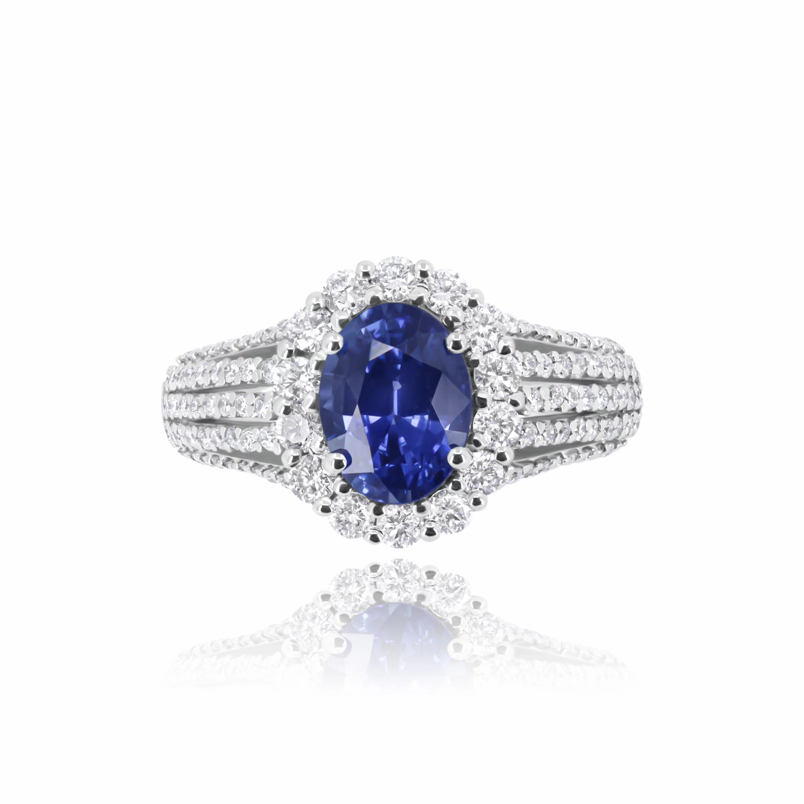 Anello con Zaffiro e Diamanti in oro bianco 18 kt.