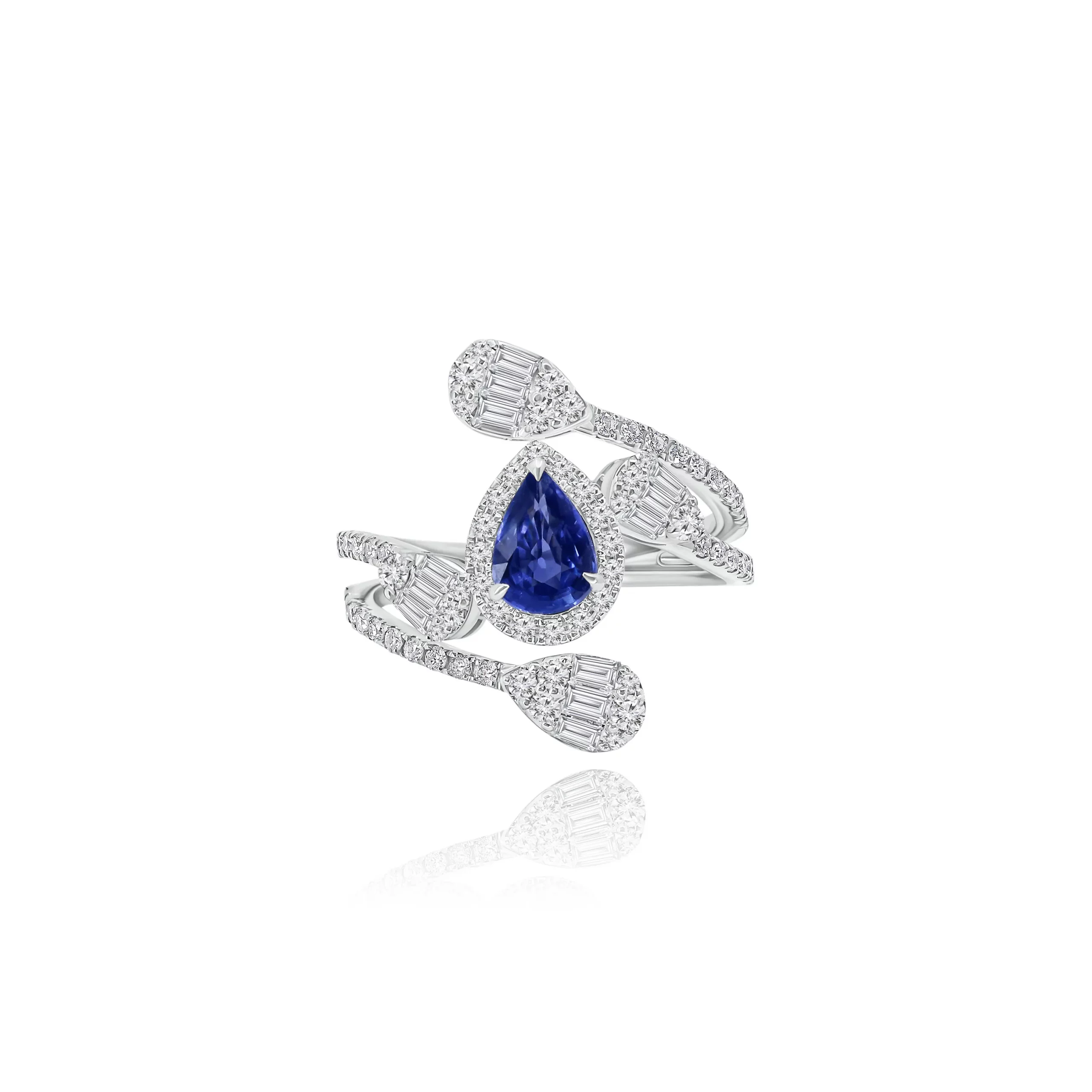 Anello con Zaffiro e Diamanti in oro bianco 18 kt.