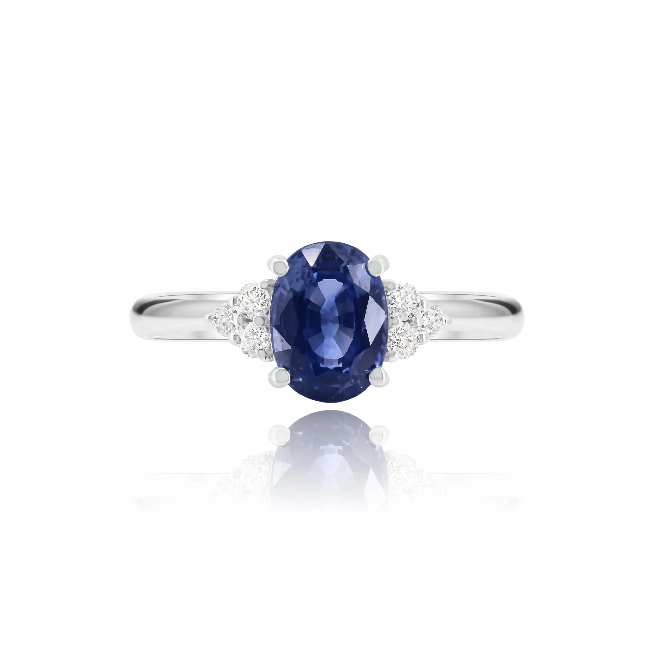 Anello con Zaffiro e Diamanti in oro bianco 18 kt, appartenente all’esclusiva collezione IGDC: