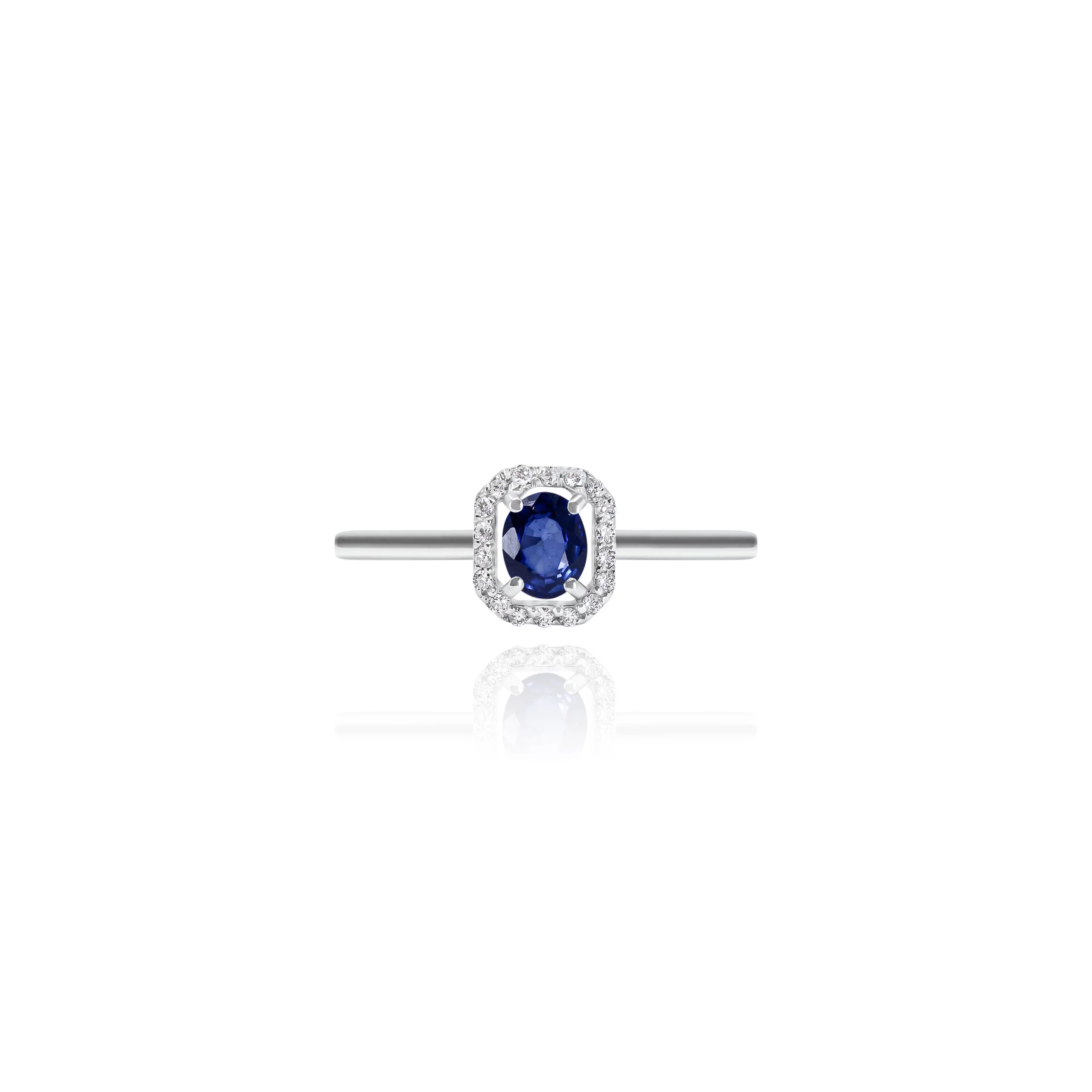 Anello con Zaffiro e Diamanti in oro bianco 18kt: