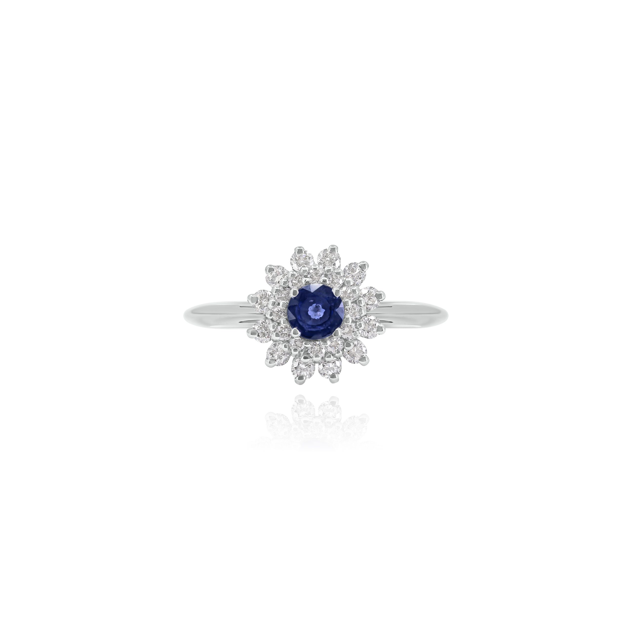 Anello con Zaffiro e Diamanti in oro bianco 18 kt: