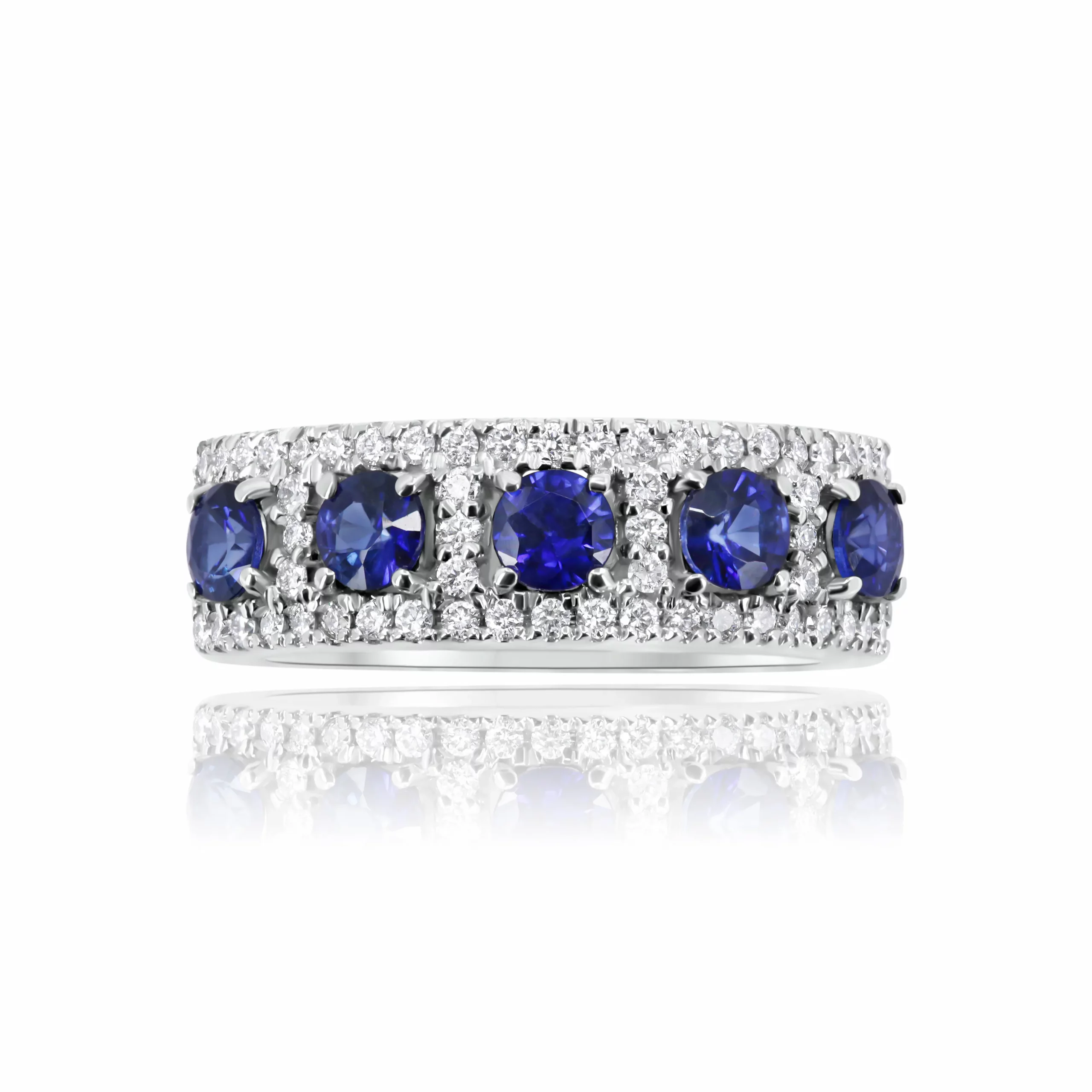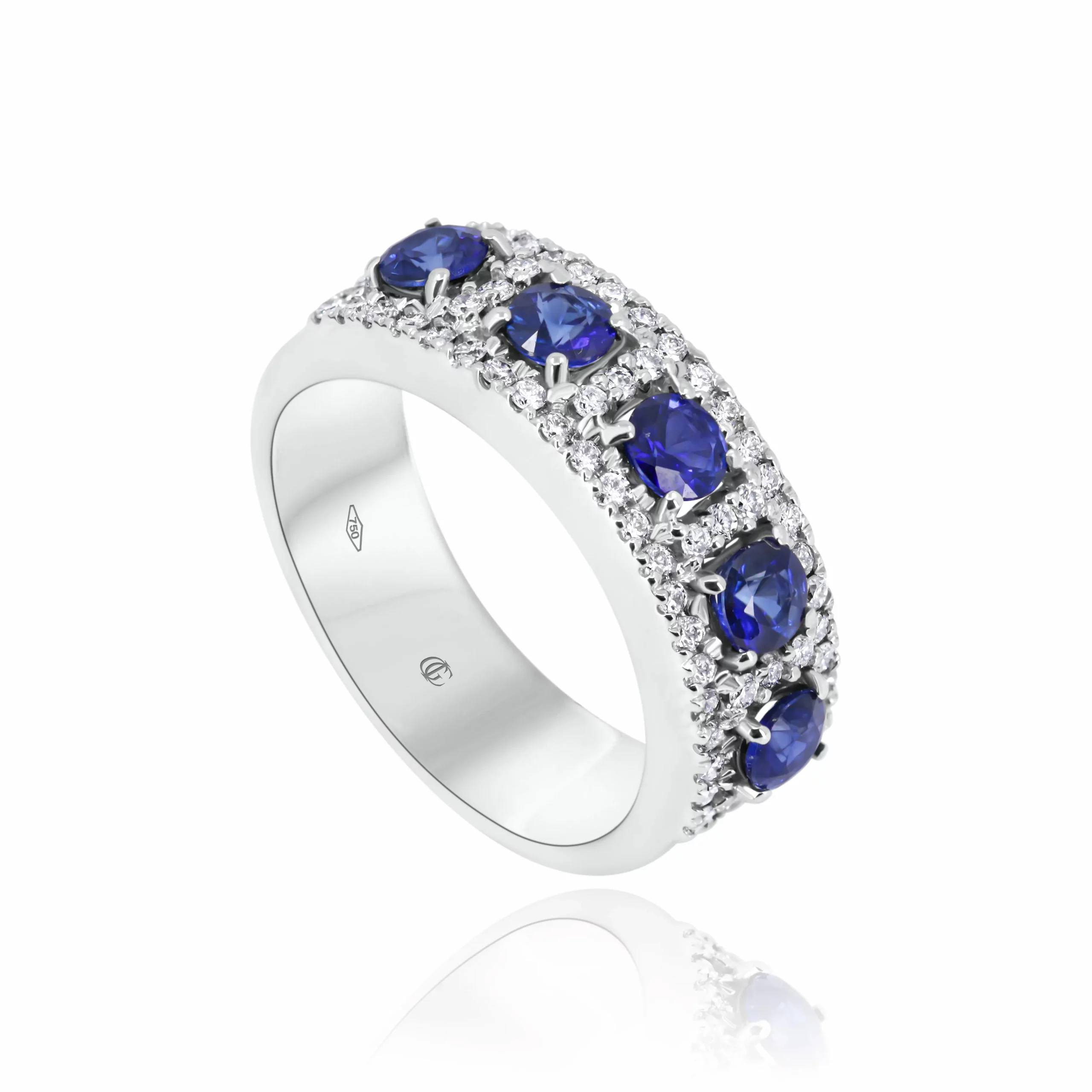Anello con Zaffiri e Diamanti in oro bianco 18 kt: