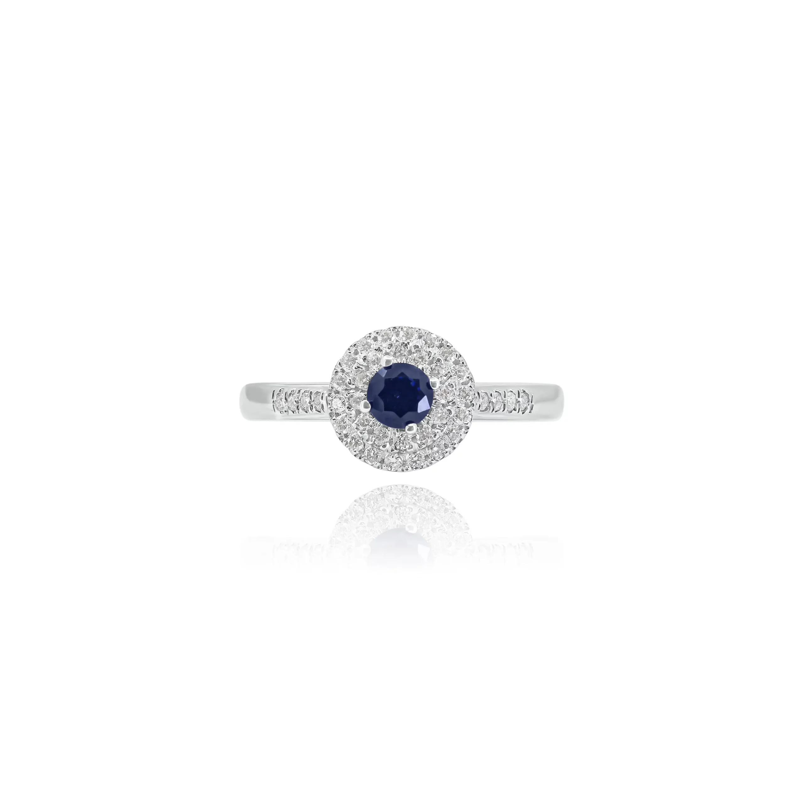 Anello con Zaffiro e Diamanti in oro bianco 18 kt.
