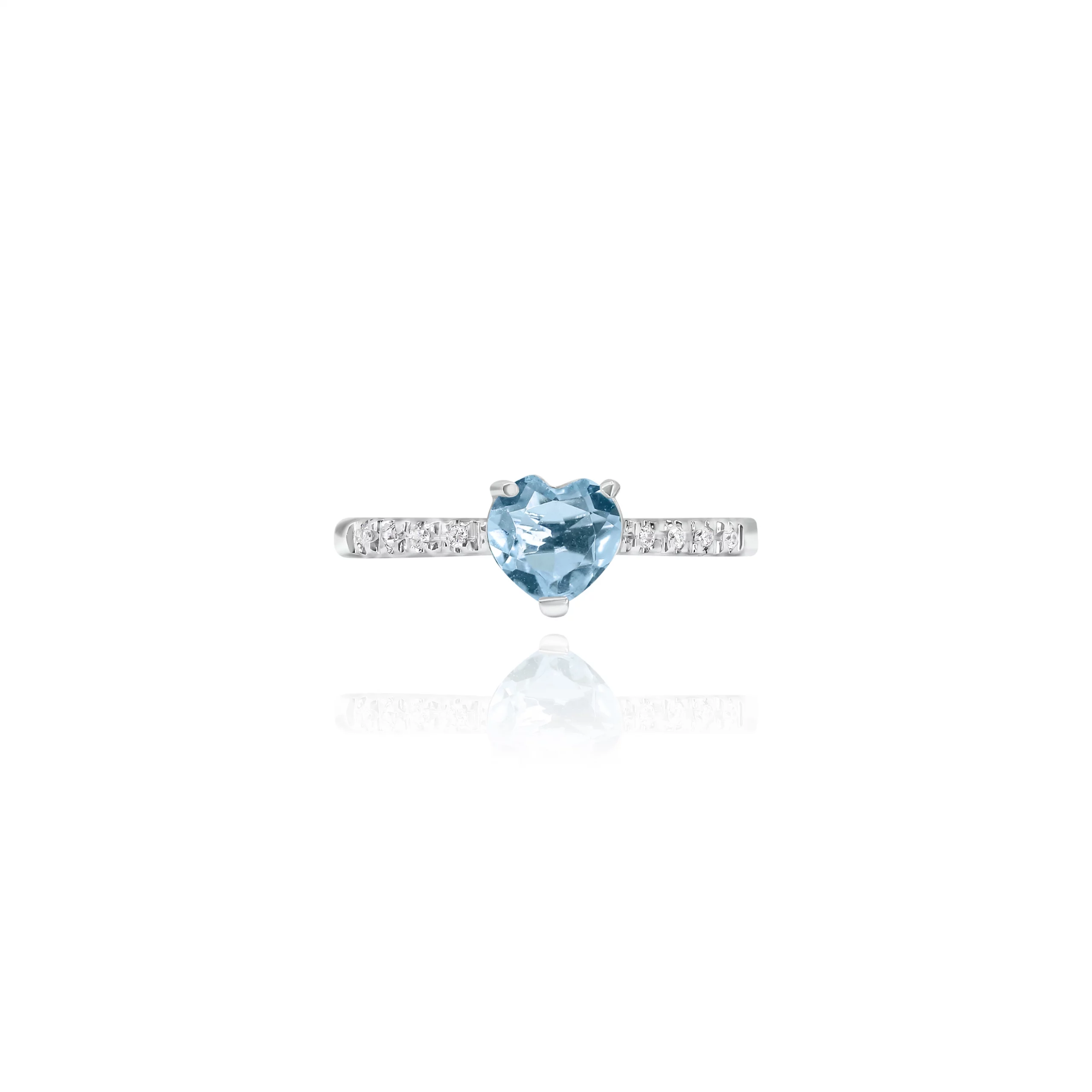 Anello Cuore con Acquamarina e Diamanti in oro bianco18 kt.