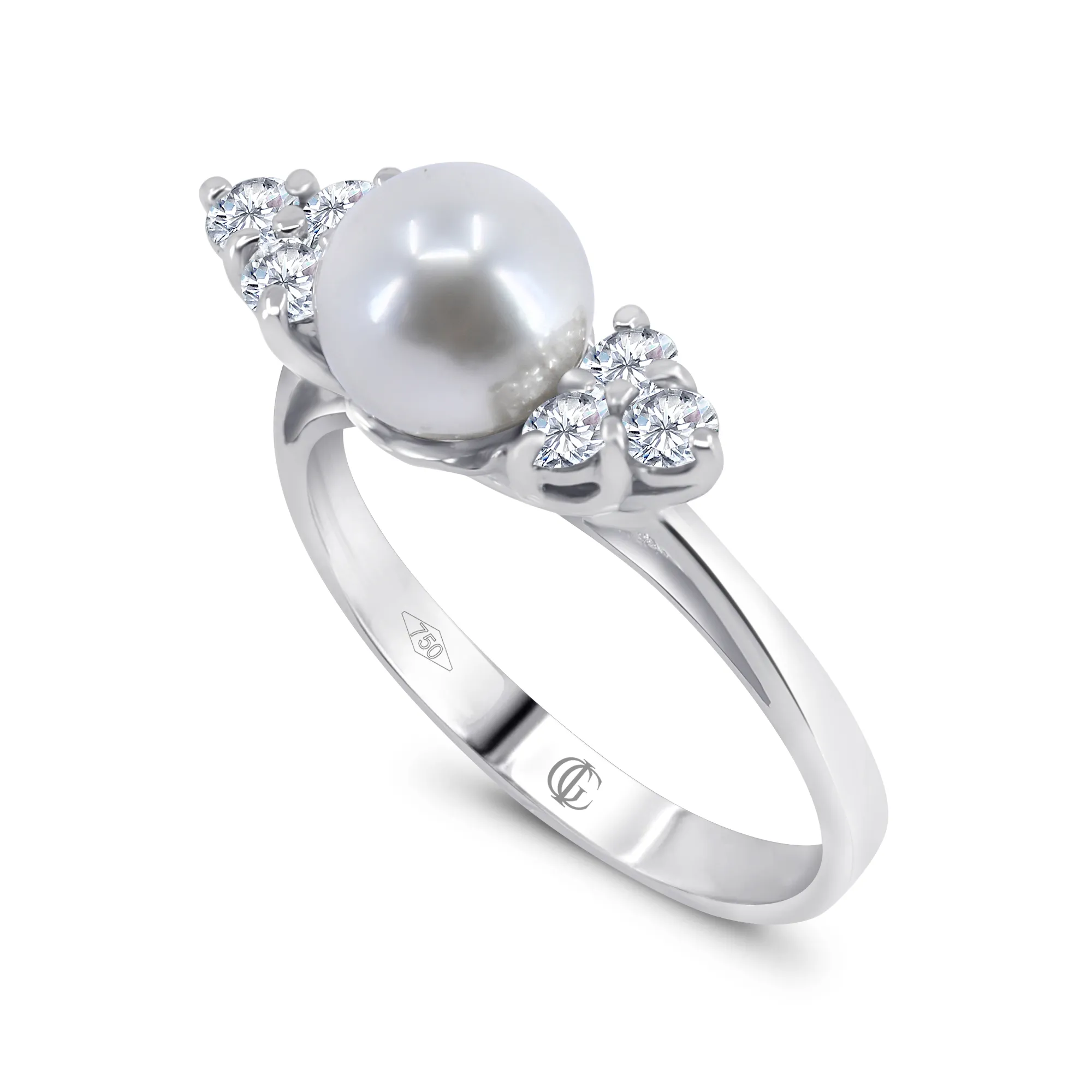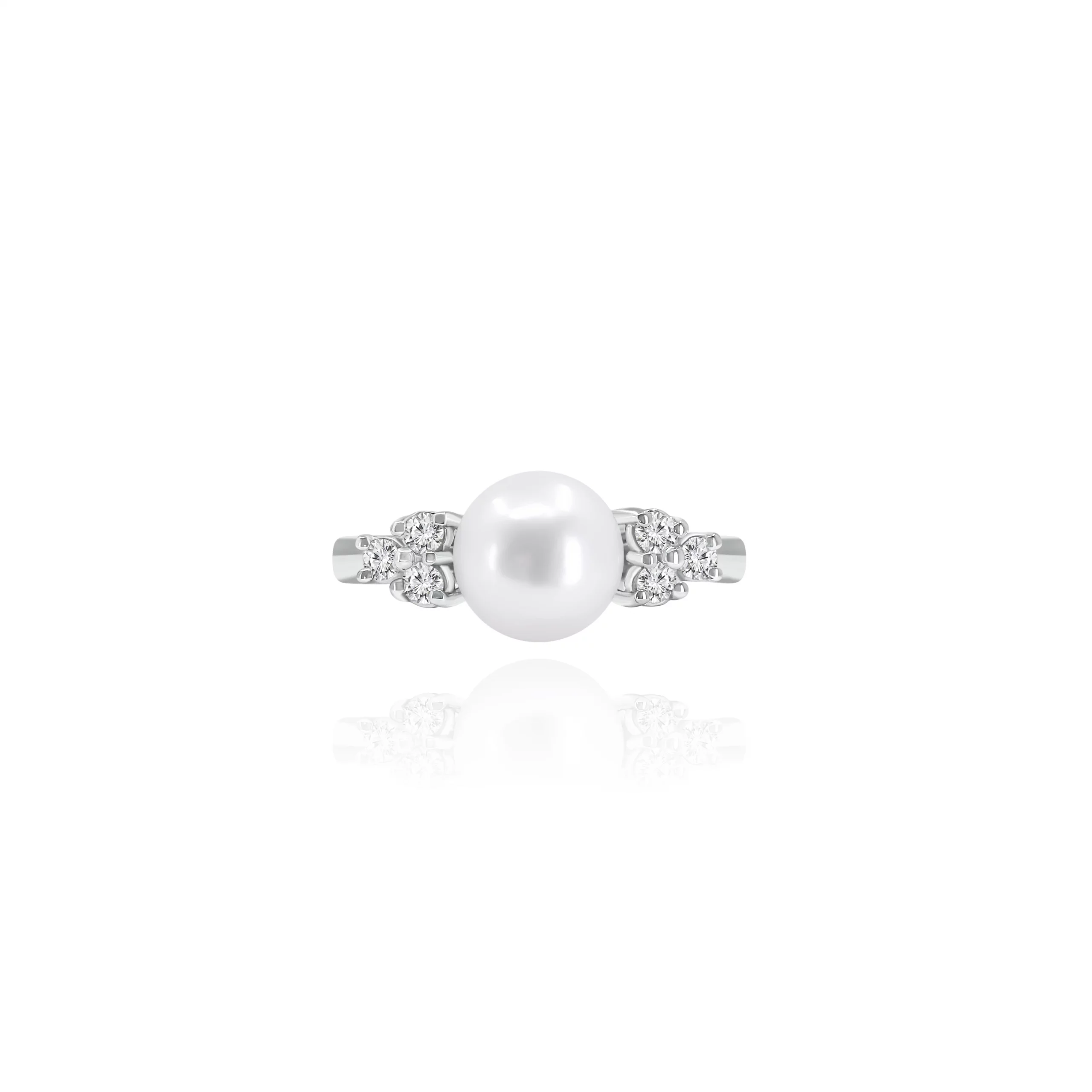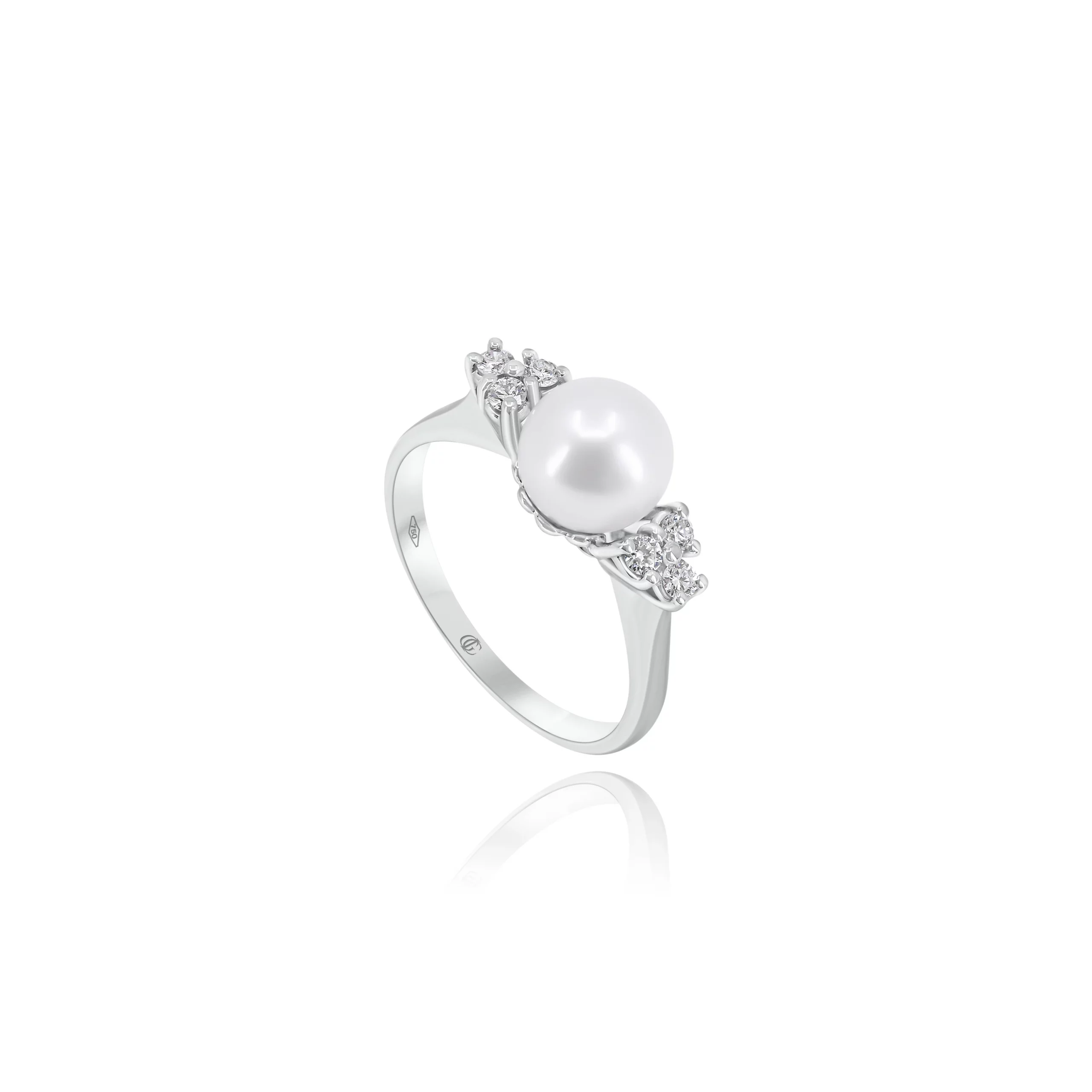 Anello in oro bianco 18 kt con Perla Akoya e Diamanti, disponibile in diverse carature.