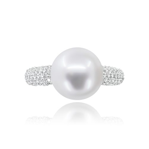 Anello in oro bianco 18 kt con Perla Tahiti e Diamanti: