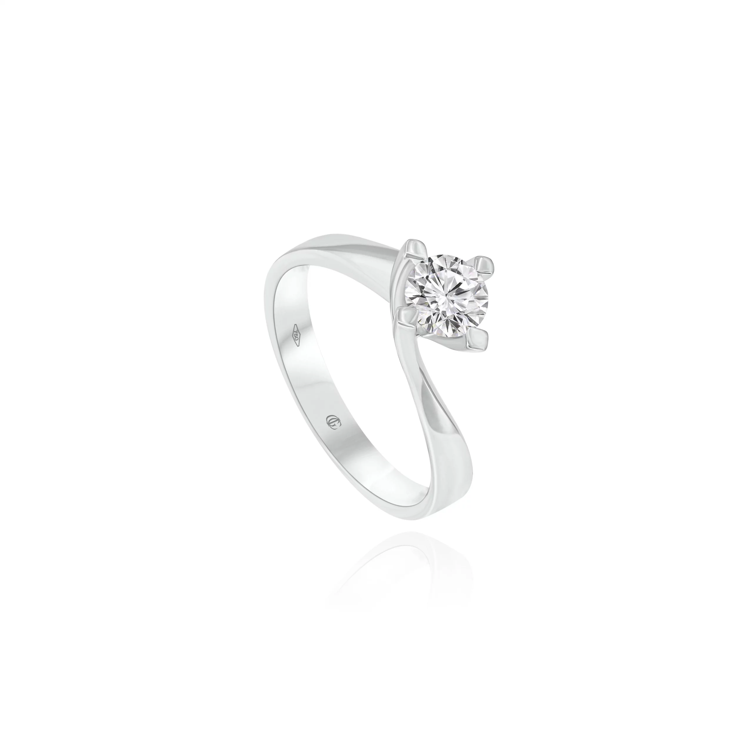 Anello Solitario con Diamante in oro bianco 18 kt, disponibile in due diverse carature: