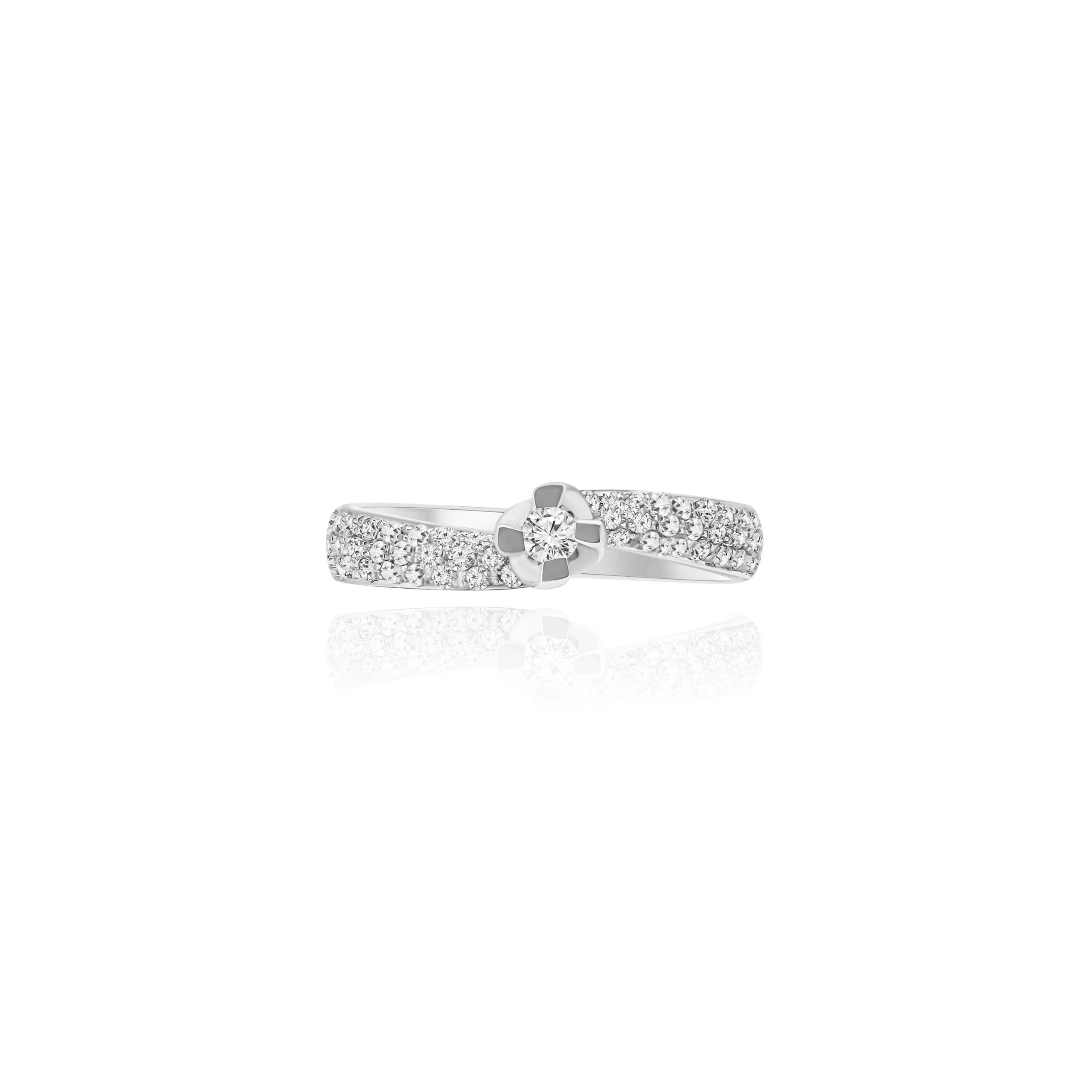 Anello Solitario con Diamanti in oro bianco 18 kt:
