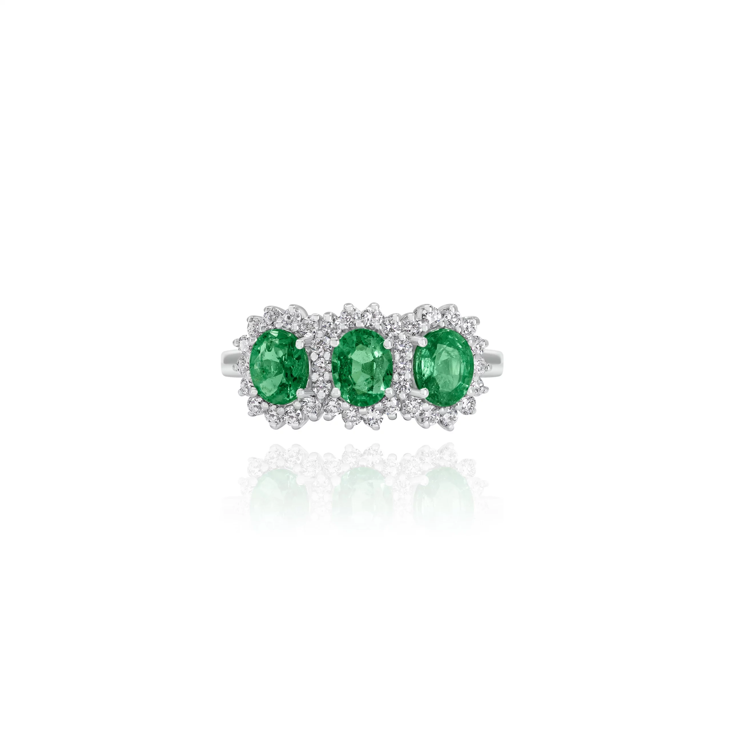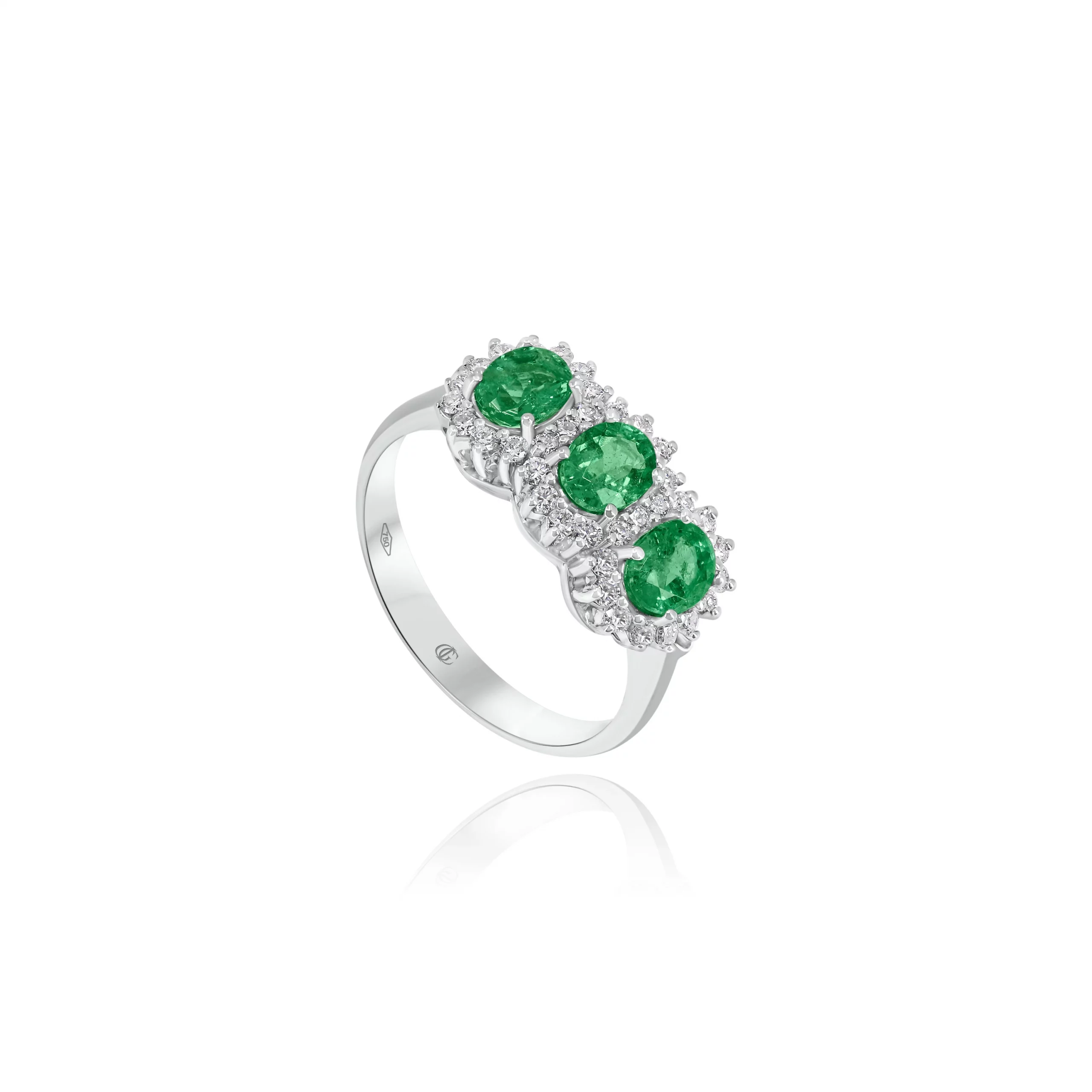 Anello Trilogy con Smeraldi e Diamanti in oro bianco 18 kt.
