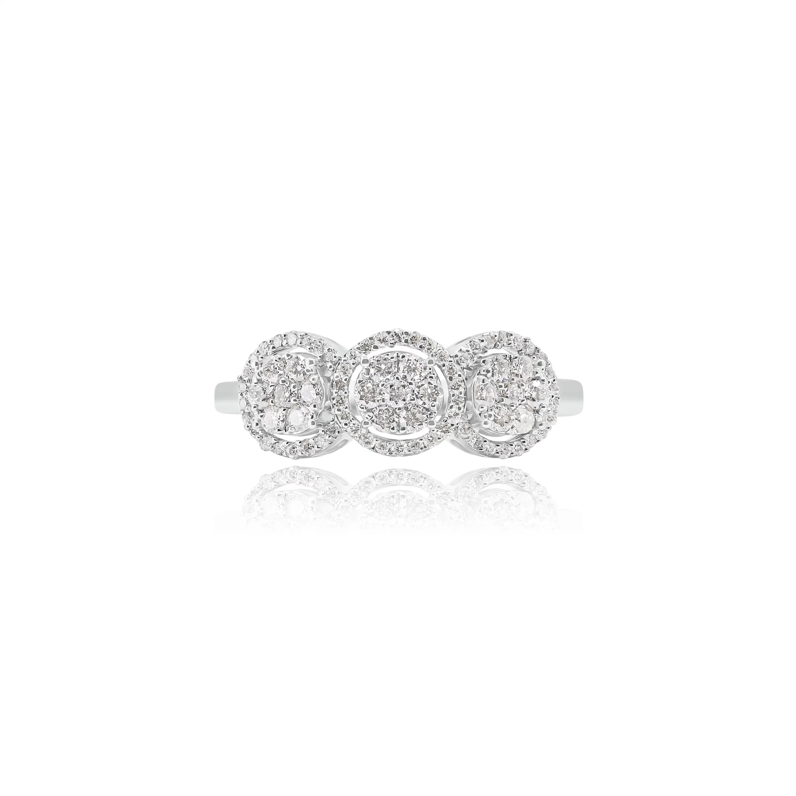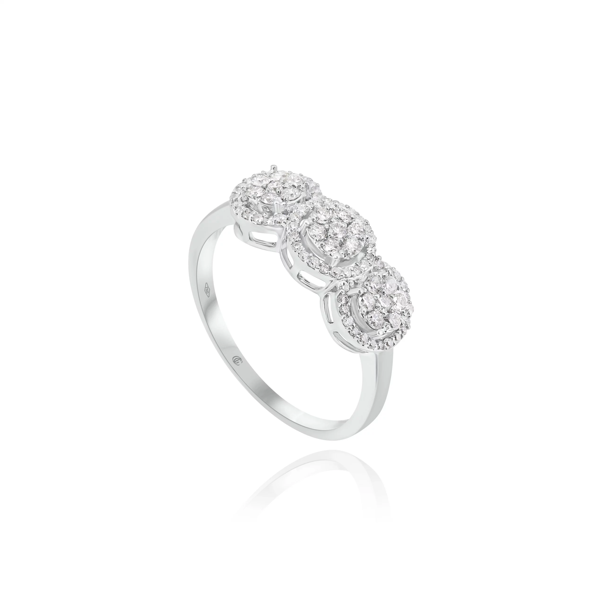 Anello Trilogy Pavè con Diamanti in oro bianco 18 kt: