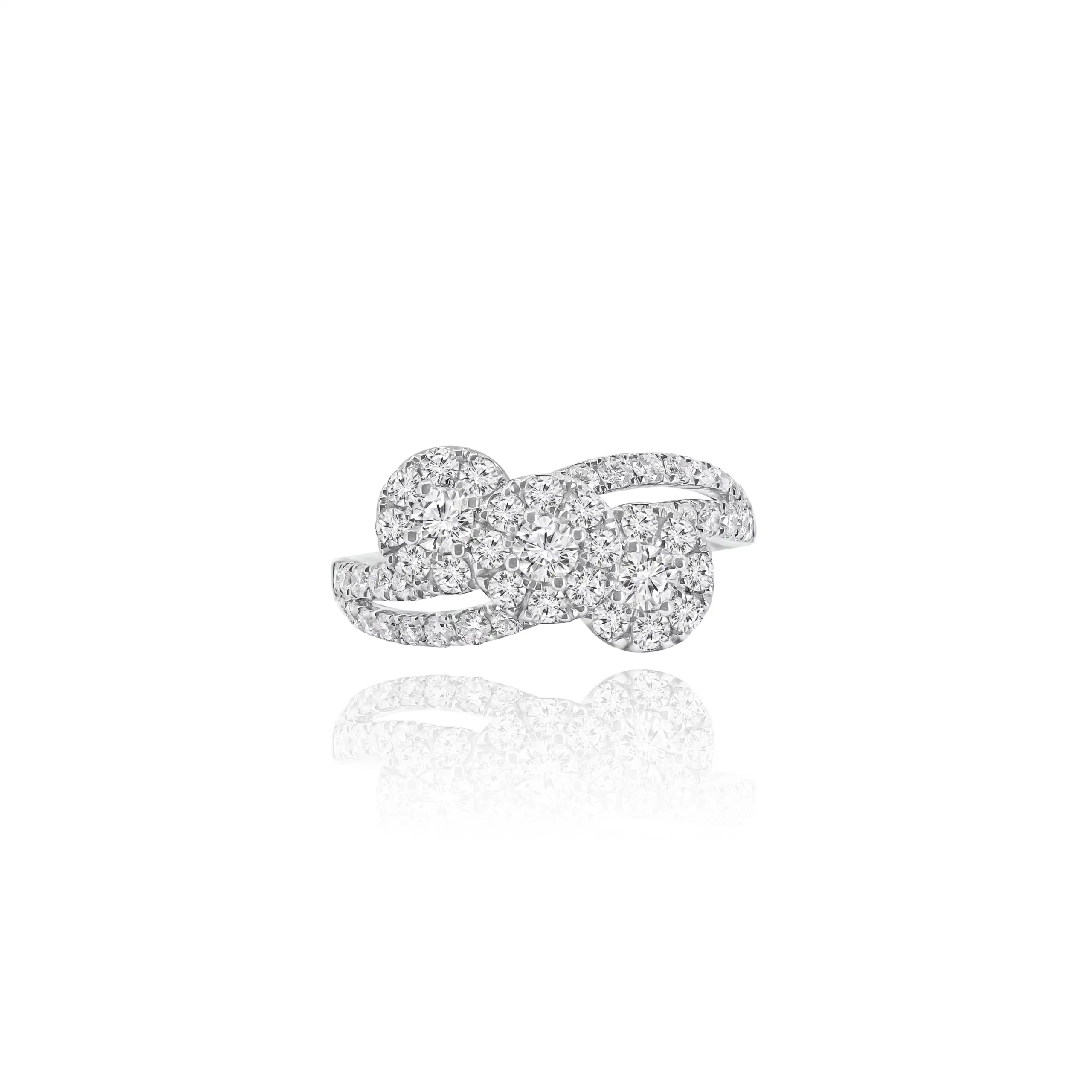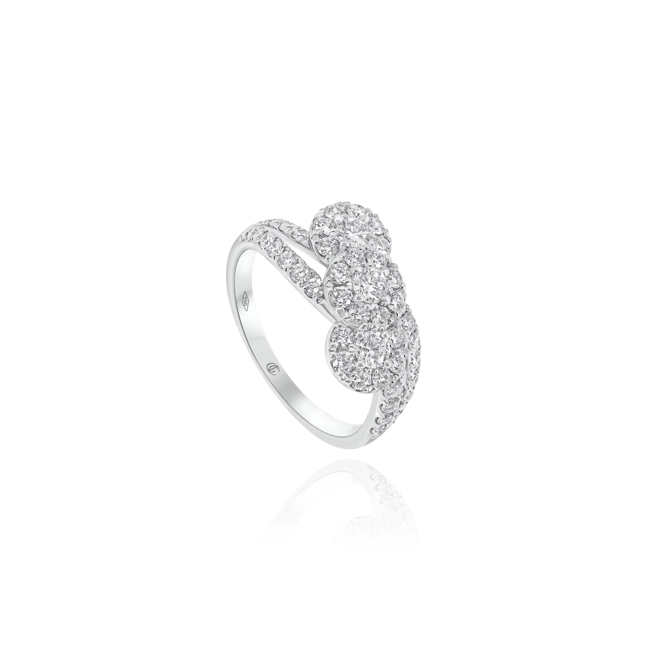 Anello Trilogy Pavè con Diamanti in oro bianco 18 kt: