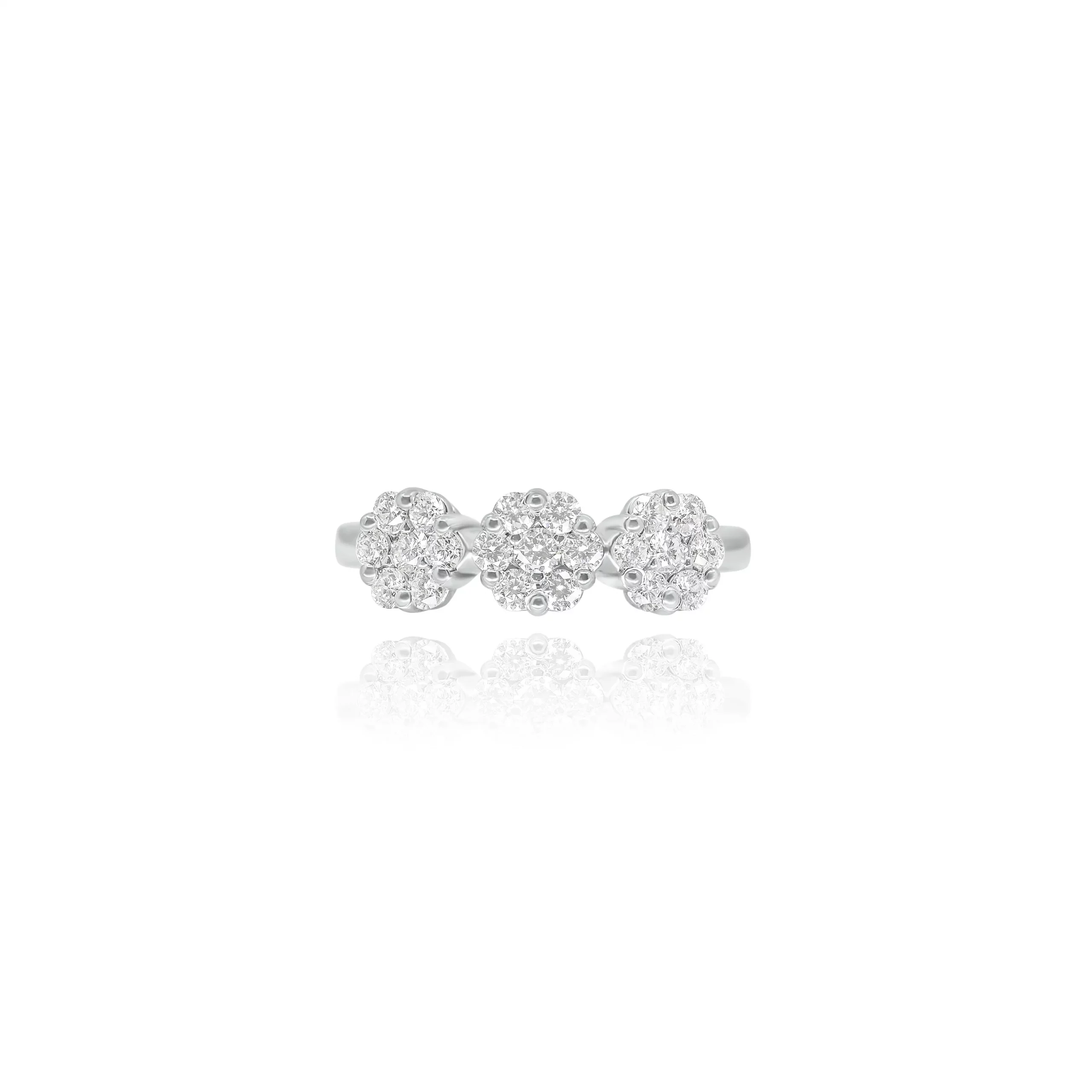 Anello Trilogy Pavè con Diamanti in oro bianco 18 kt: